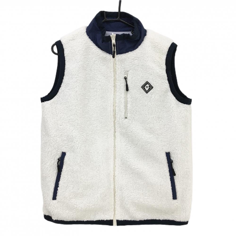 【美品】V12 リバーシブルベスト グレー×ネイビー タウン柄 裏ボア白 メンズ L ゴルフウェア V12