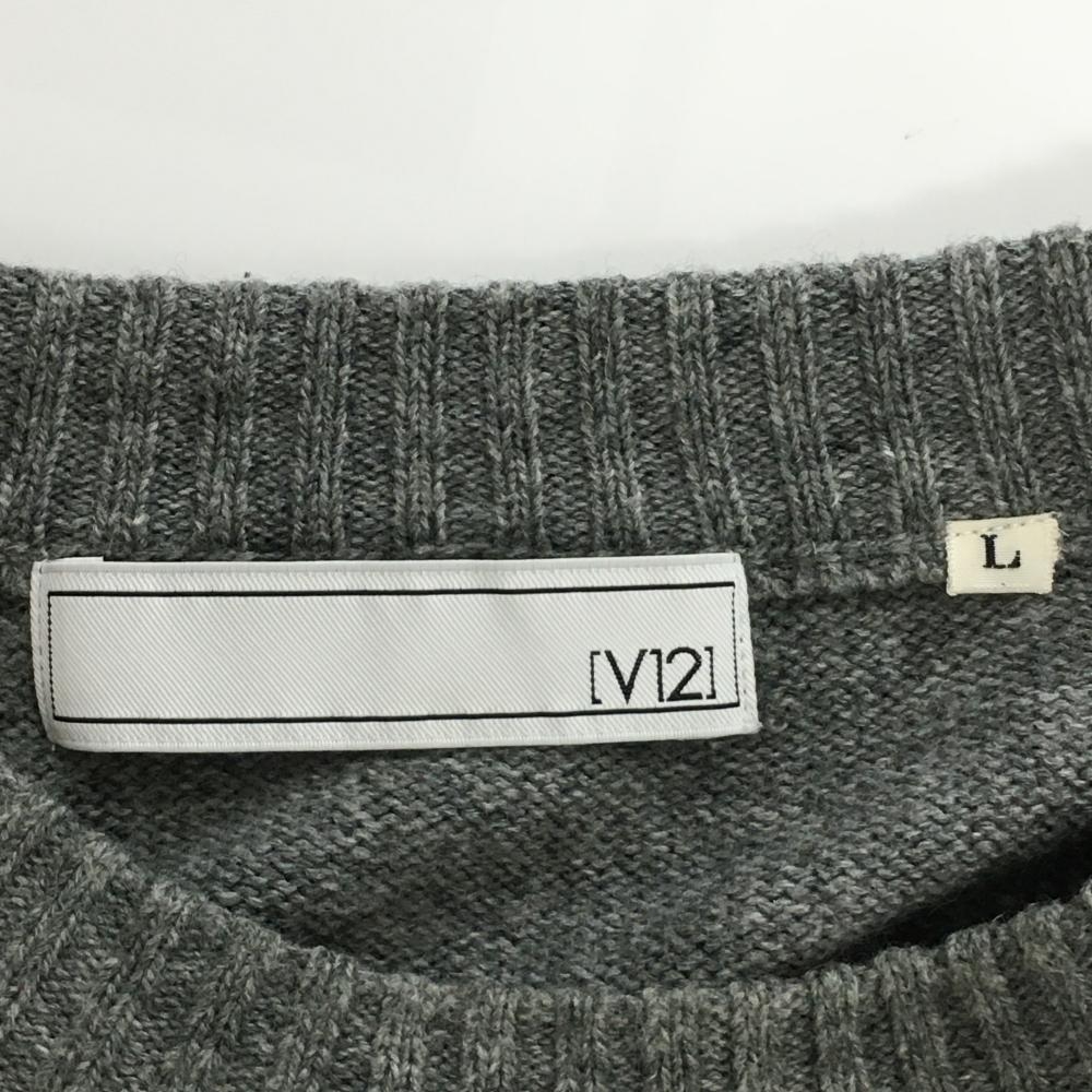 V12 セーター グレー×黒 フロントロゴ ウール混 ニット メンズ L ゴルフウェア V12