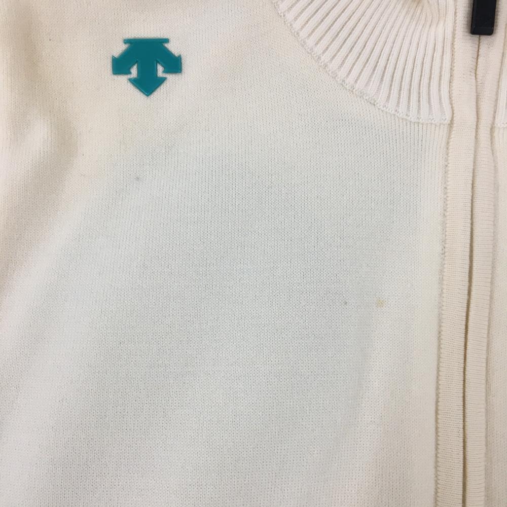 デサントゴルフ ニットジャケット アイボリー×グリーンブルー レディース M ゴルフウェア DESCENTE