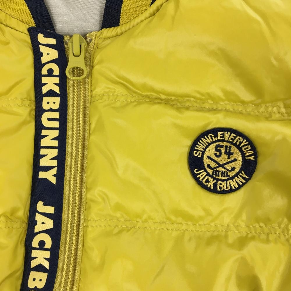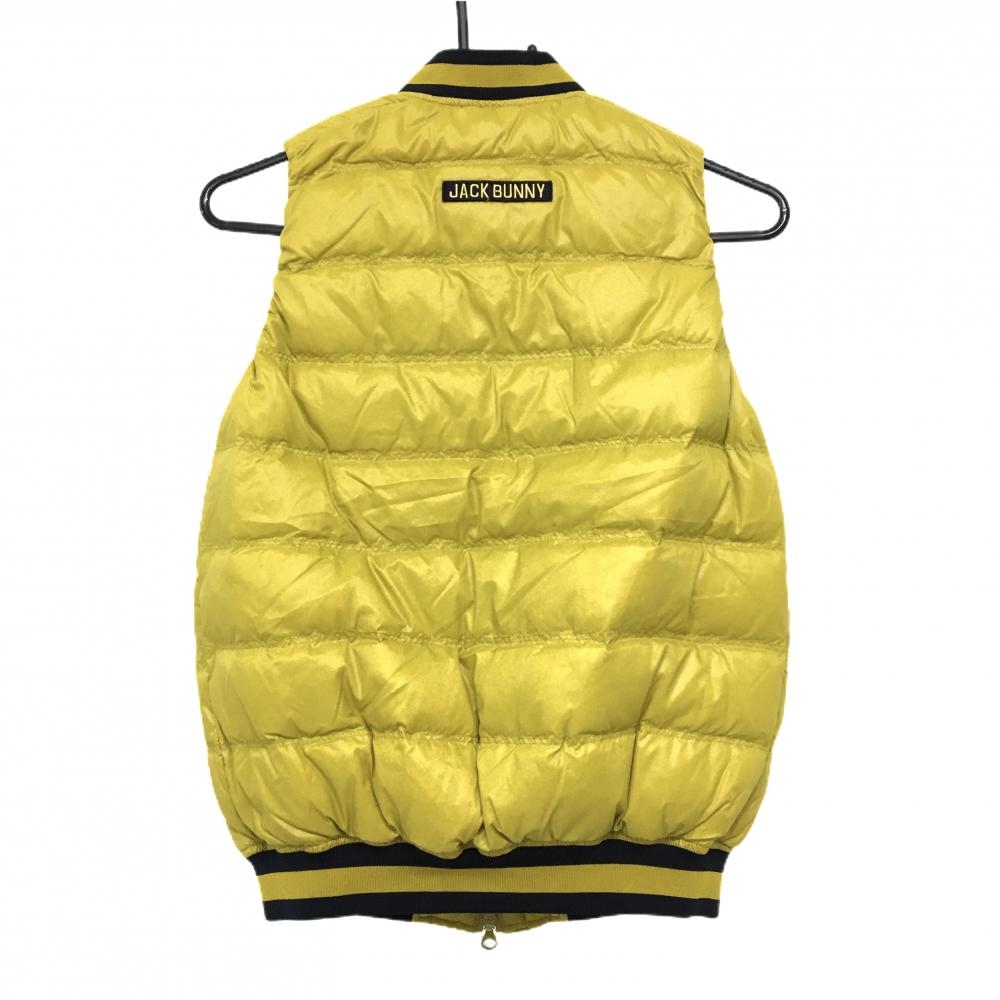 【超美品】ジャックバニー ダウンベスト イエロー×ネイビー ジップ横ロゴ ダウン65% レディース 0(S) ゴルフウェア Jack Bunny