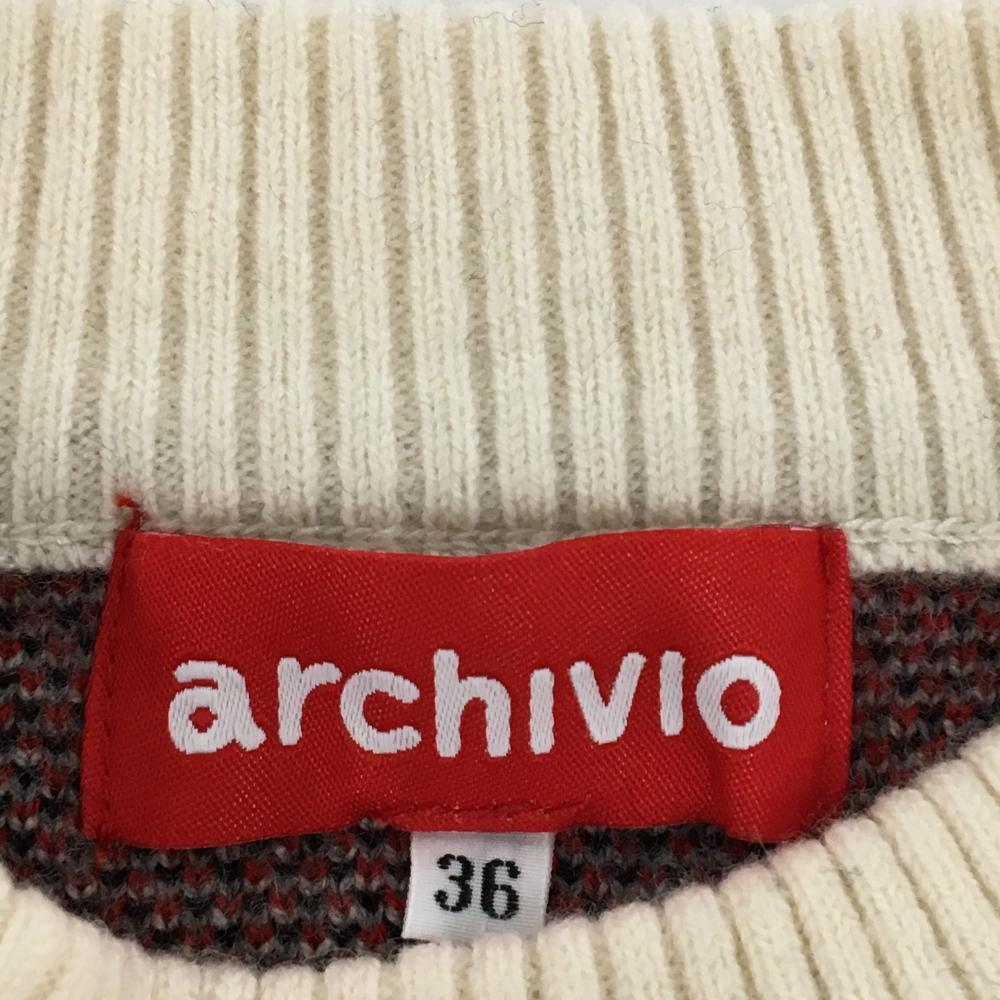 【超美品】アルチビオ セーター 白×レッド ロゴ総柄 ウール混 レディース 36(S) ゴルフウェア archivio