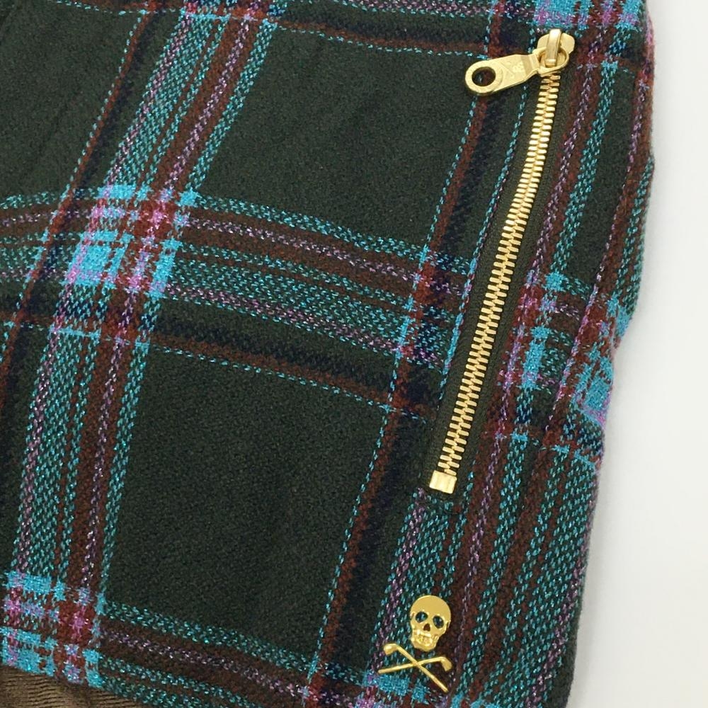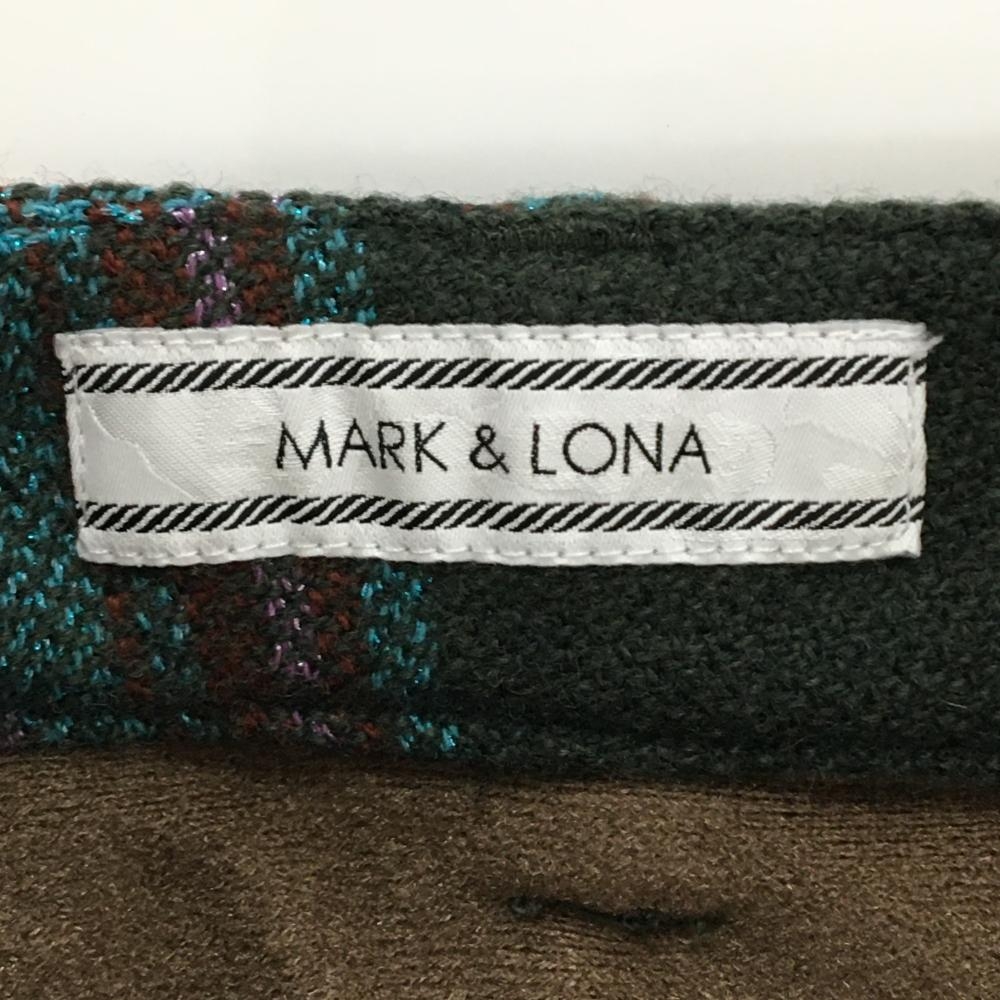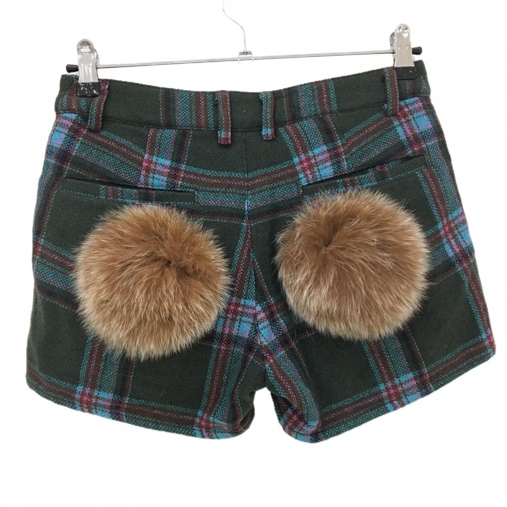 【超美品】マークアンドロナ ショートパンツ ダークグリーン×ライトブルー チェック 裏起毛 レディース 38(M) ゴルフウェア MARK&LONA