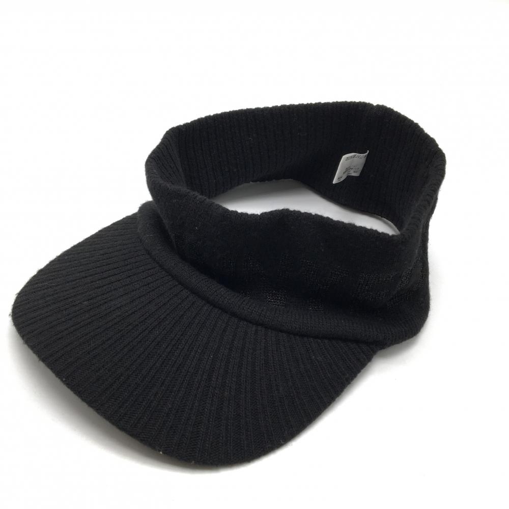 【美品】マスターバニー 3WAYつば付きニット帽 黒 ロゴラメ ウール混 サンバイザー FR ゴルフウェア MASTER BUNNY EDITION
