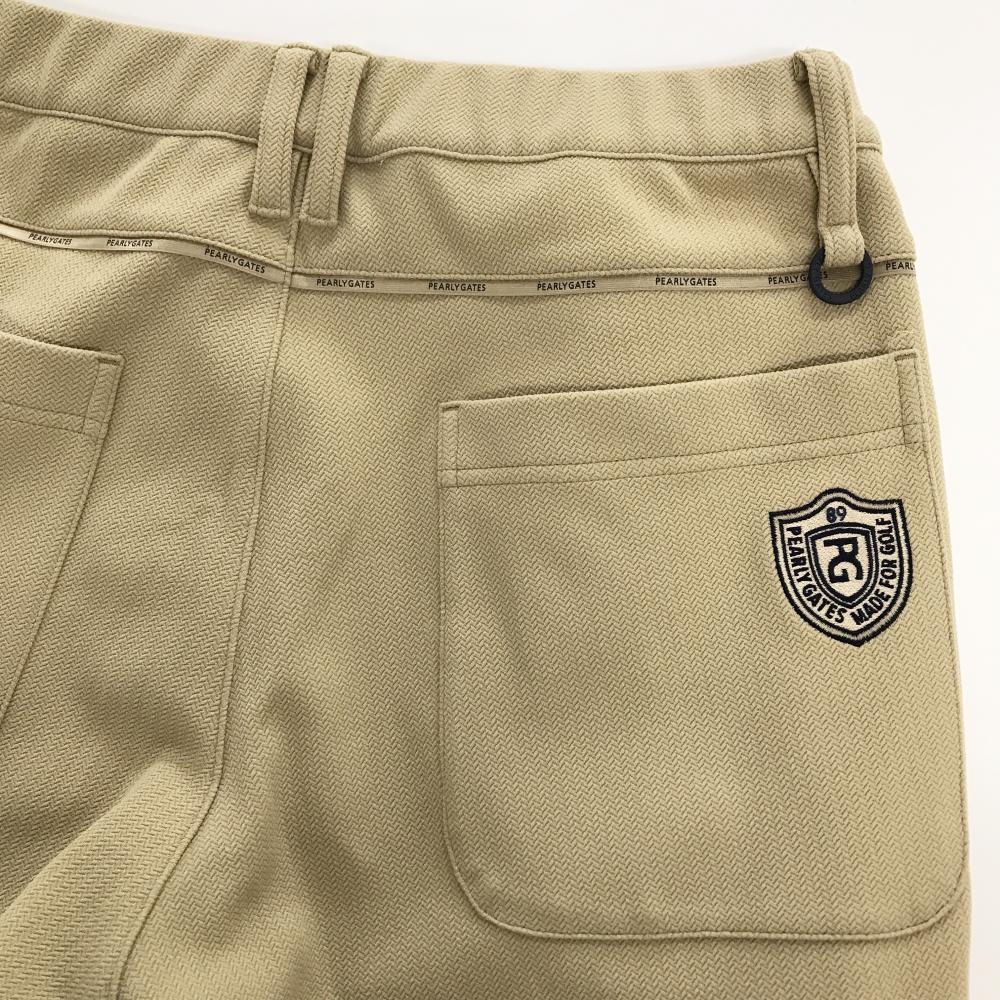 【超美品】パーリーゲイツ パンツ ベージュ 地模様 ヒップロゴ メンズ 4(M) ゴルフウェア 2023年モデル PEARLY GATES