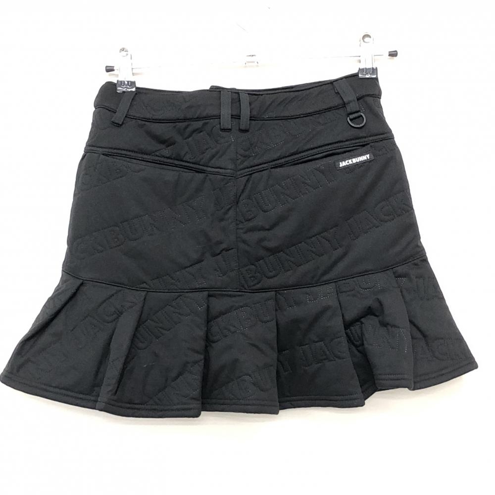 【超美品】ジャックバニー 中綿スカート 黒 ロゴ総柄 後ろプリーツ 裏起毛 レディース 0(S) ゴルフウェア 2023年モデル Jack Bunny