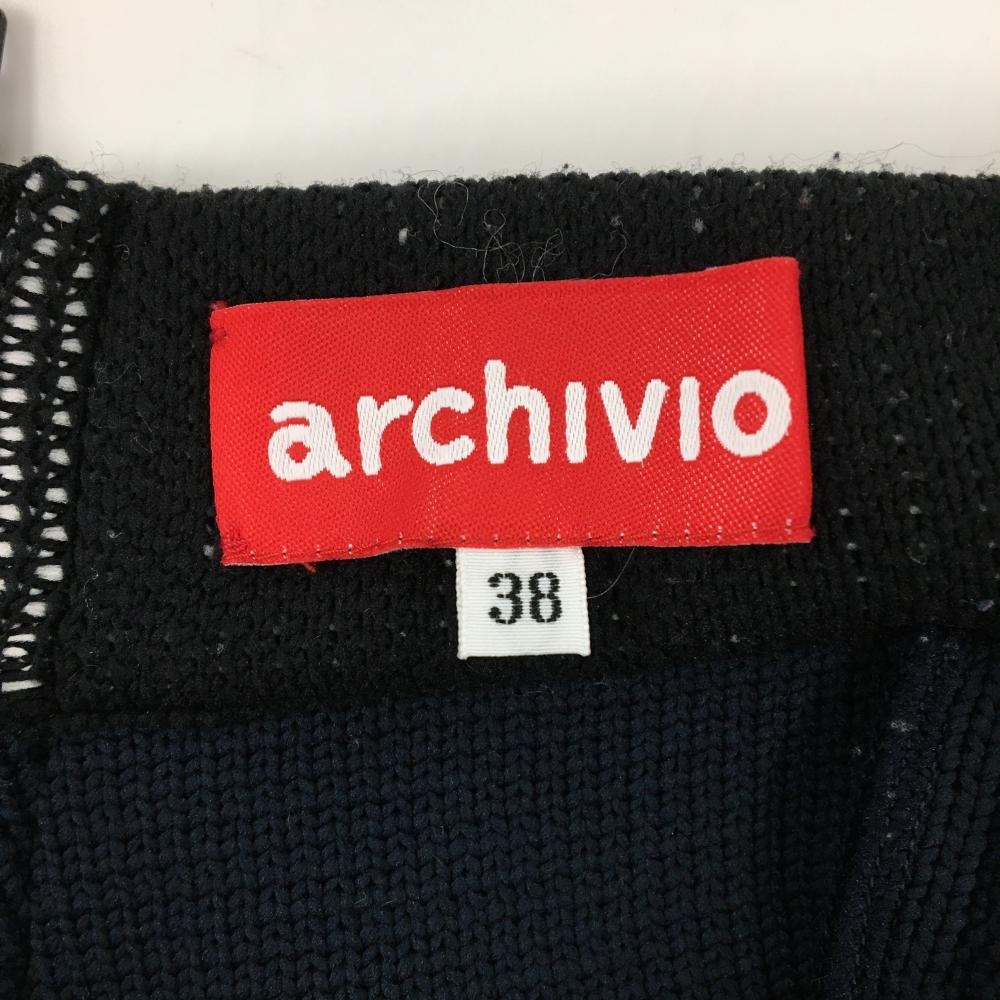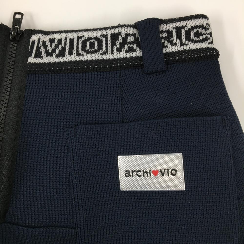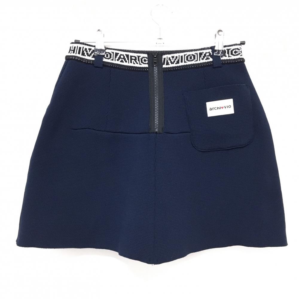 【超美品】アルチビオ ニットスカート ネイビー×白 ウエストゴム&ロゴ レディース 38(M) ゴルフウェア 2024年モデル archivio