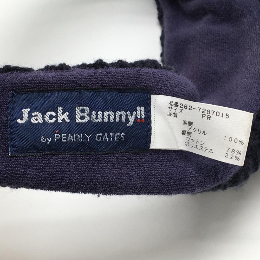 ジャックバニー ニットサンバイザー ネイビー×白 ケーブル編み 後ろリボン FR ゴルフウェア Jack Bunny
