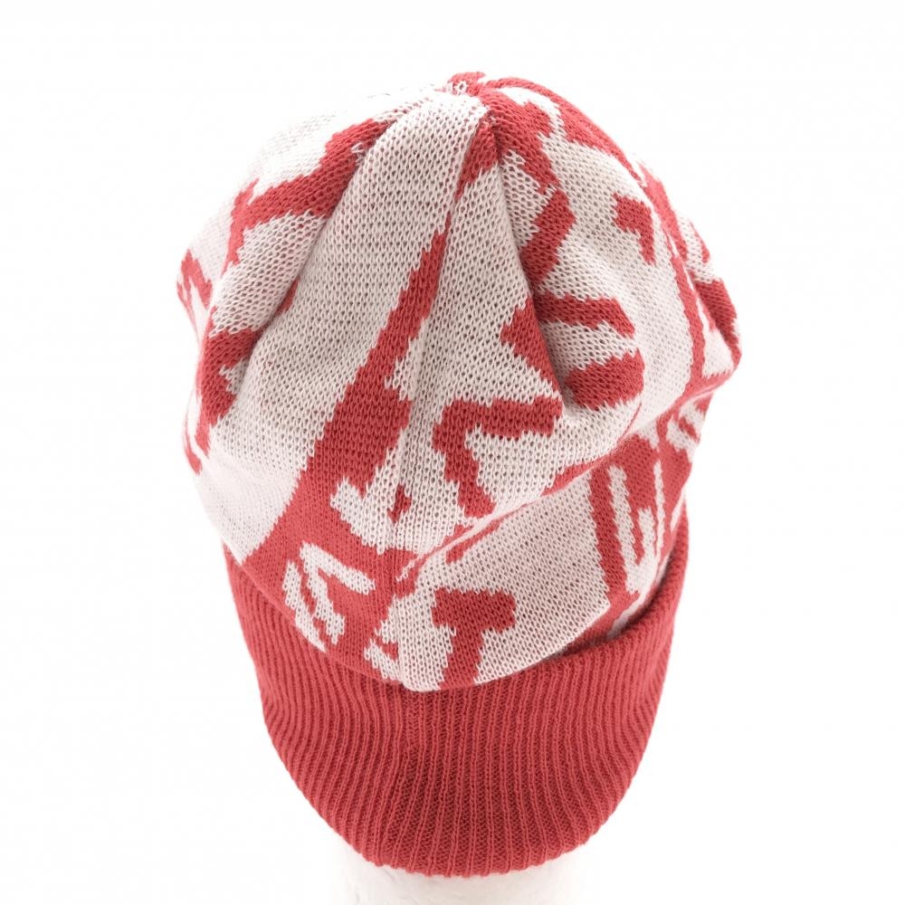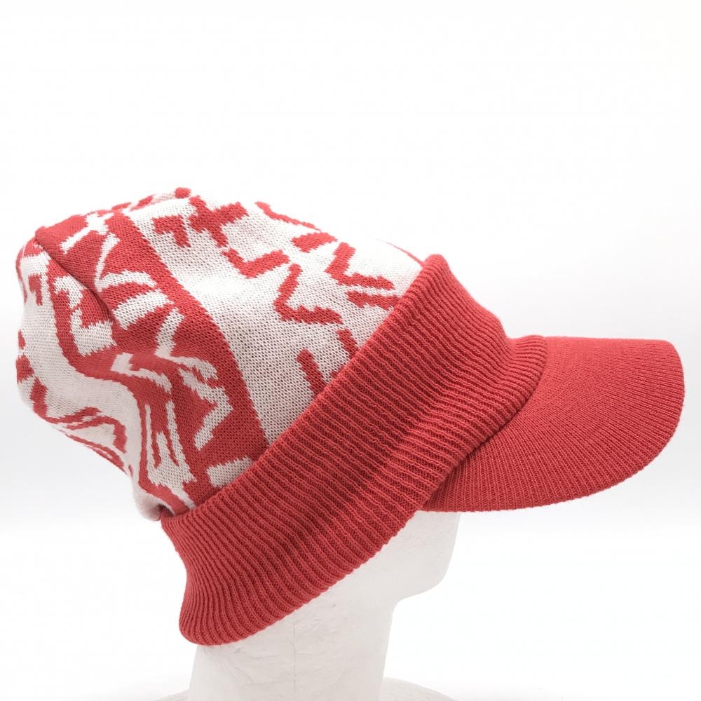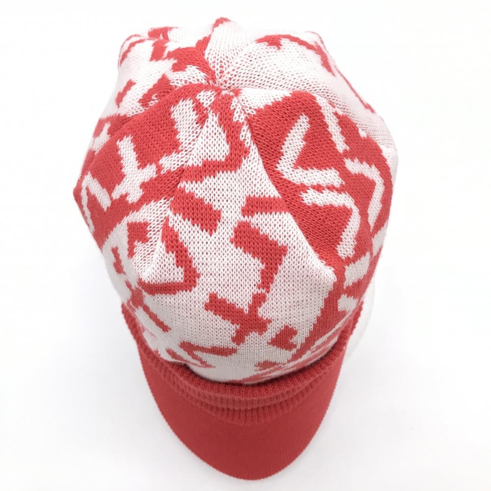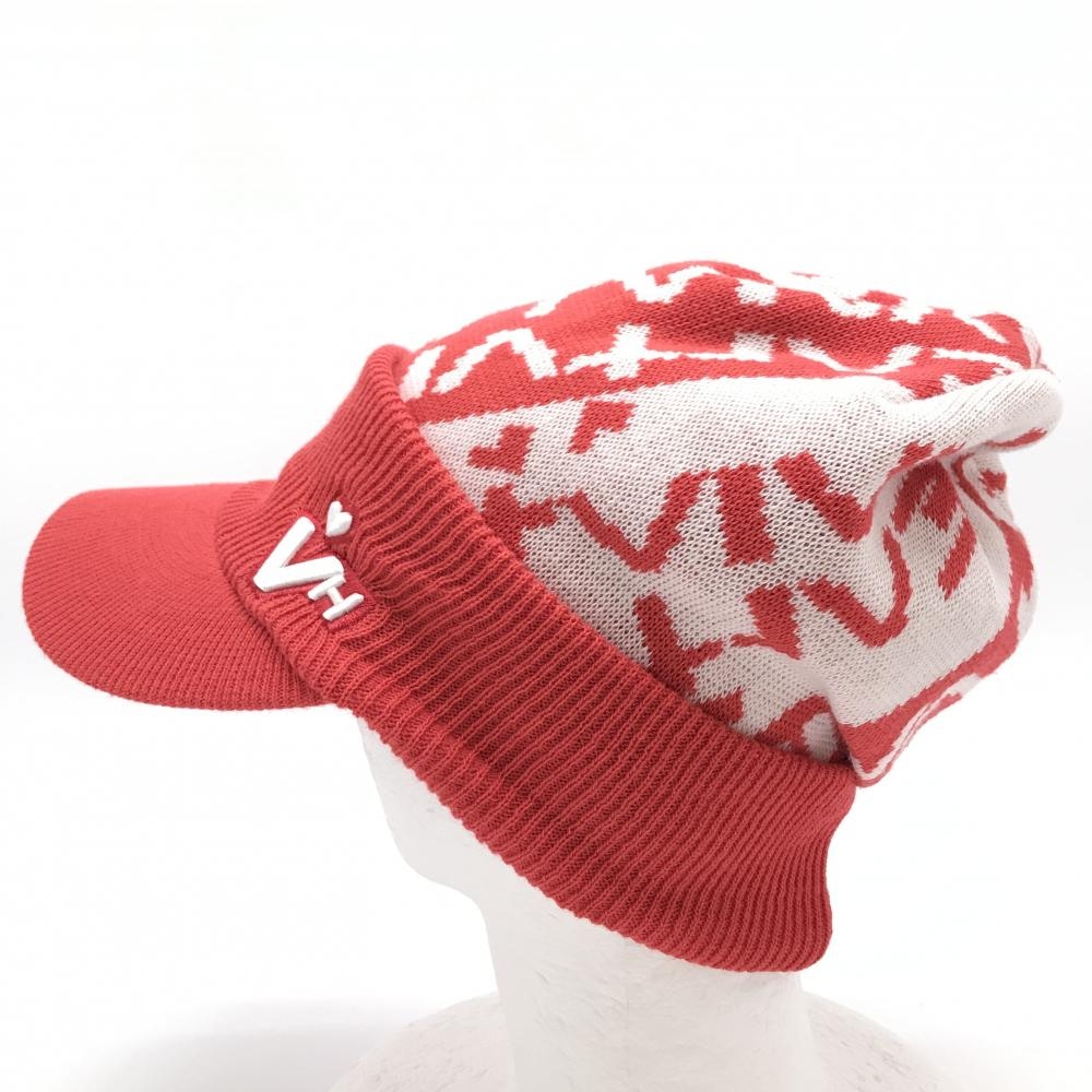 【新品】ビバハート つば付ニット帽 レッド×白 クラウン総柄 レディース 40 ゴルフウェア VIVA HEART