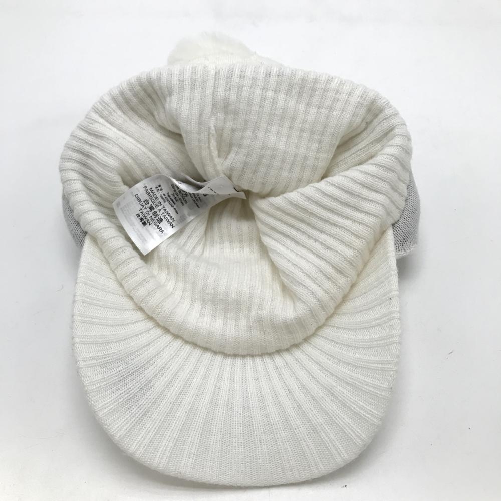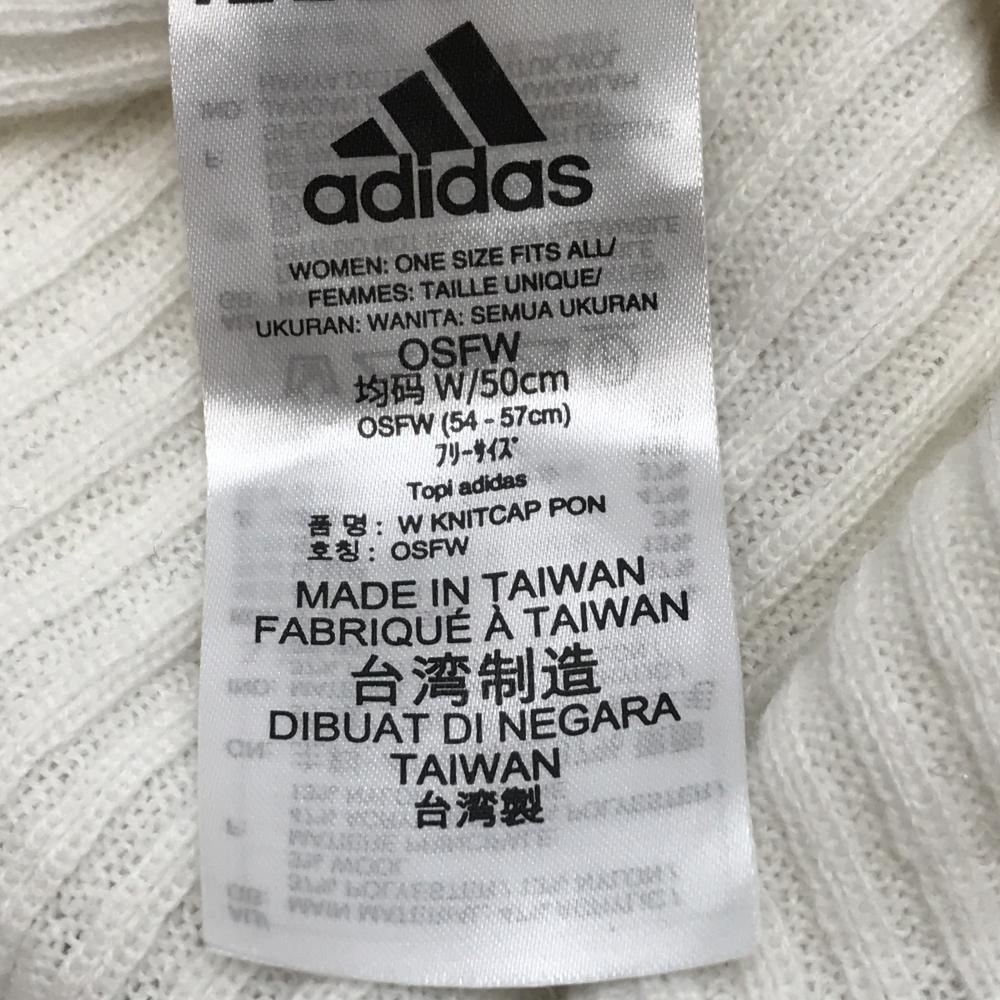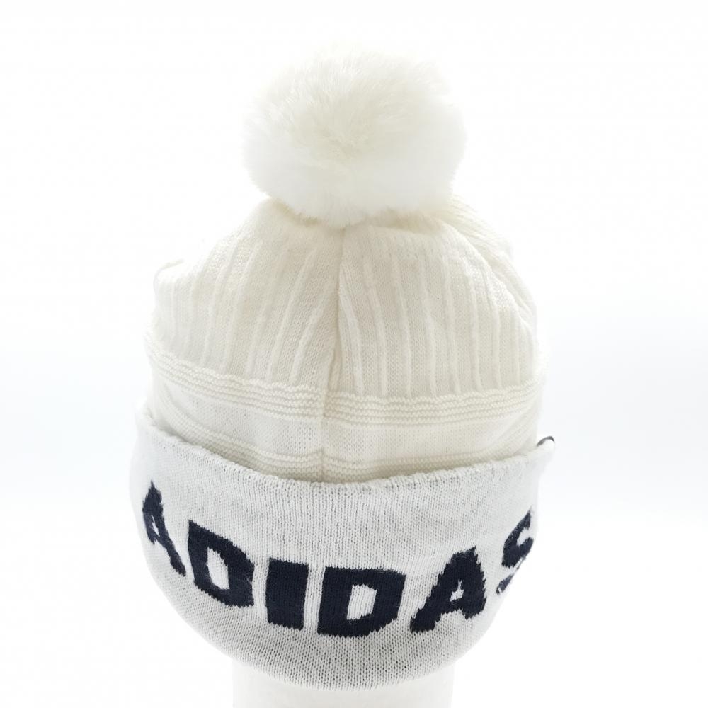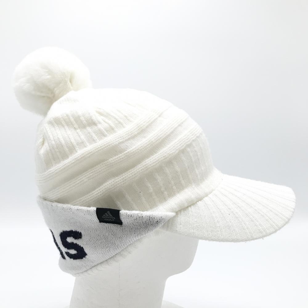 【美品】アディダス つば付きニット帽 白 織生地 ボンボン付 フリーサイズ ゴルフウェア adidas