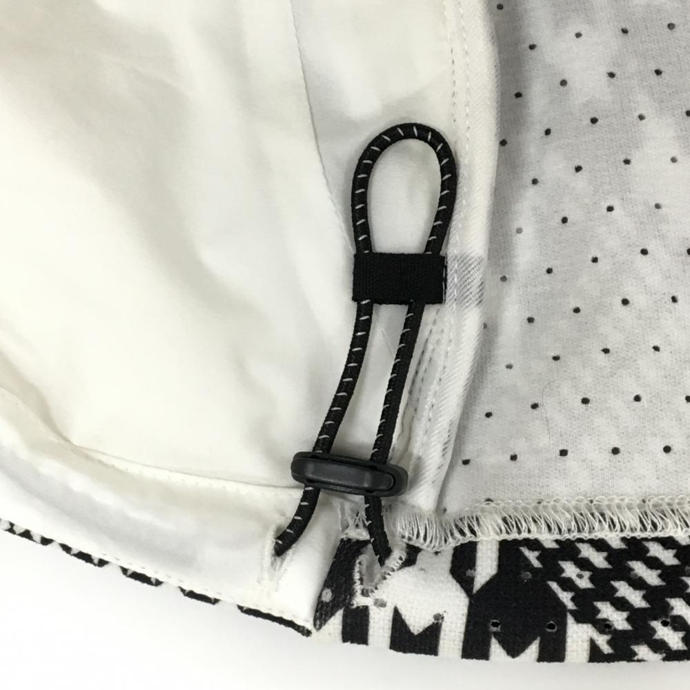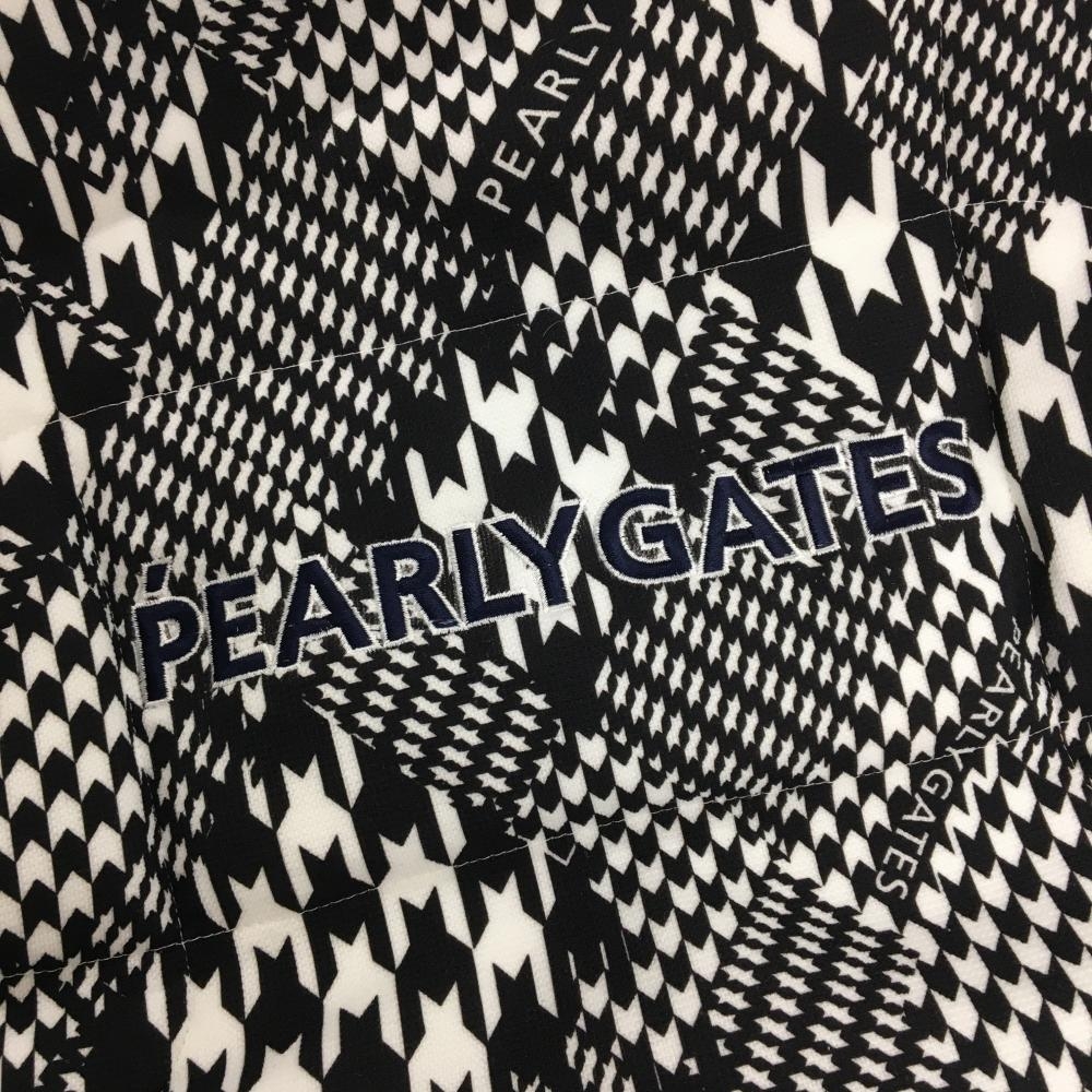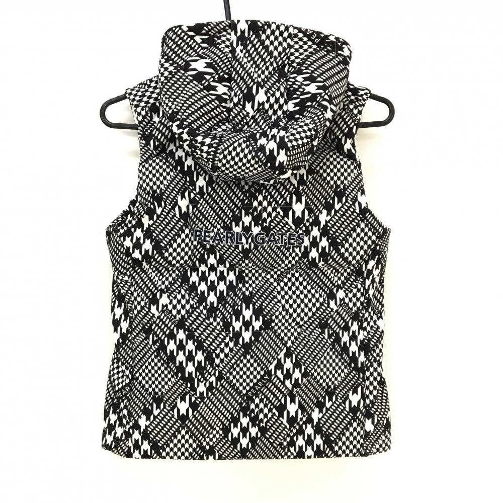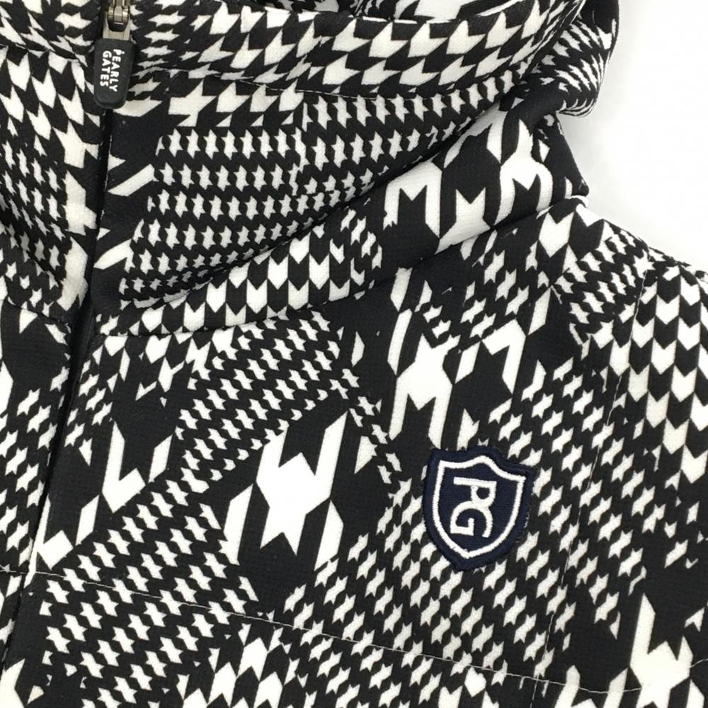 【超美品】パーリーゲイツ フード付中綿ベスト 白×黒 総柄 レディース 0(S) ゴルフウェア 2023年モデル PEARLY GATES