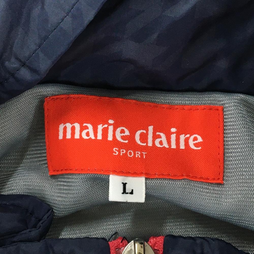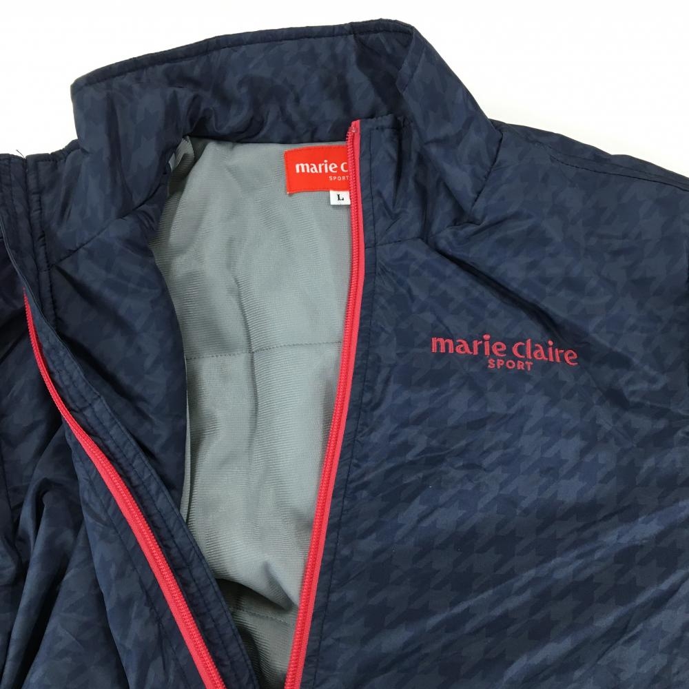 【超美品】マリクレールスポール 中綿ジャケット ネイビー 千鳥格子 ジップピンク レディース L ゴルフウェア marie claire