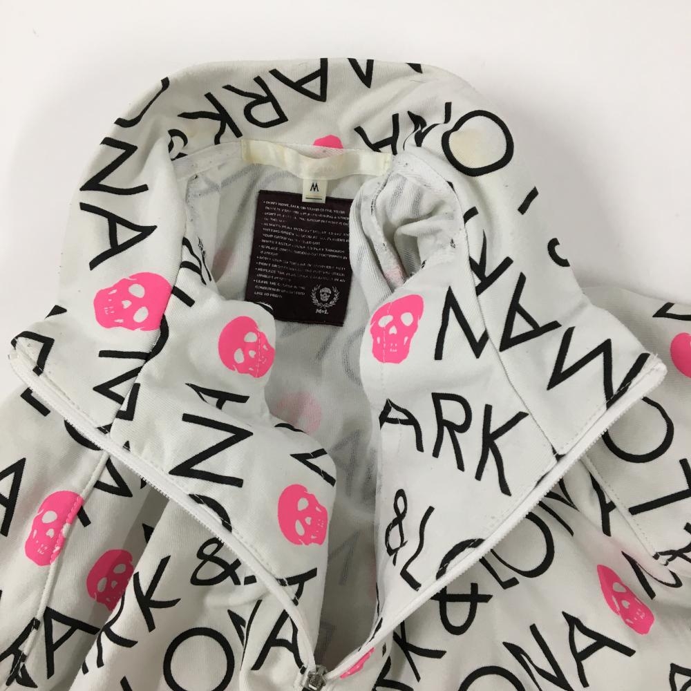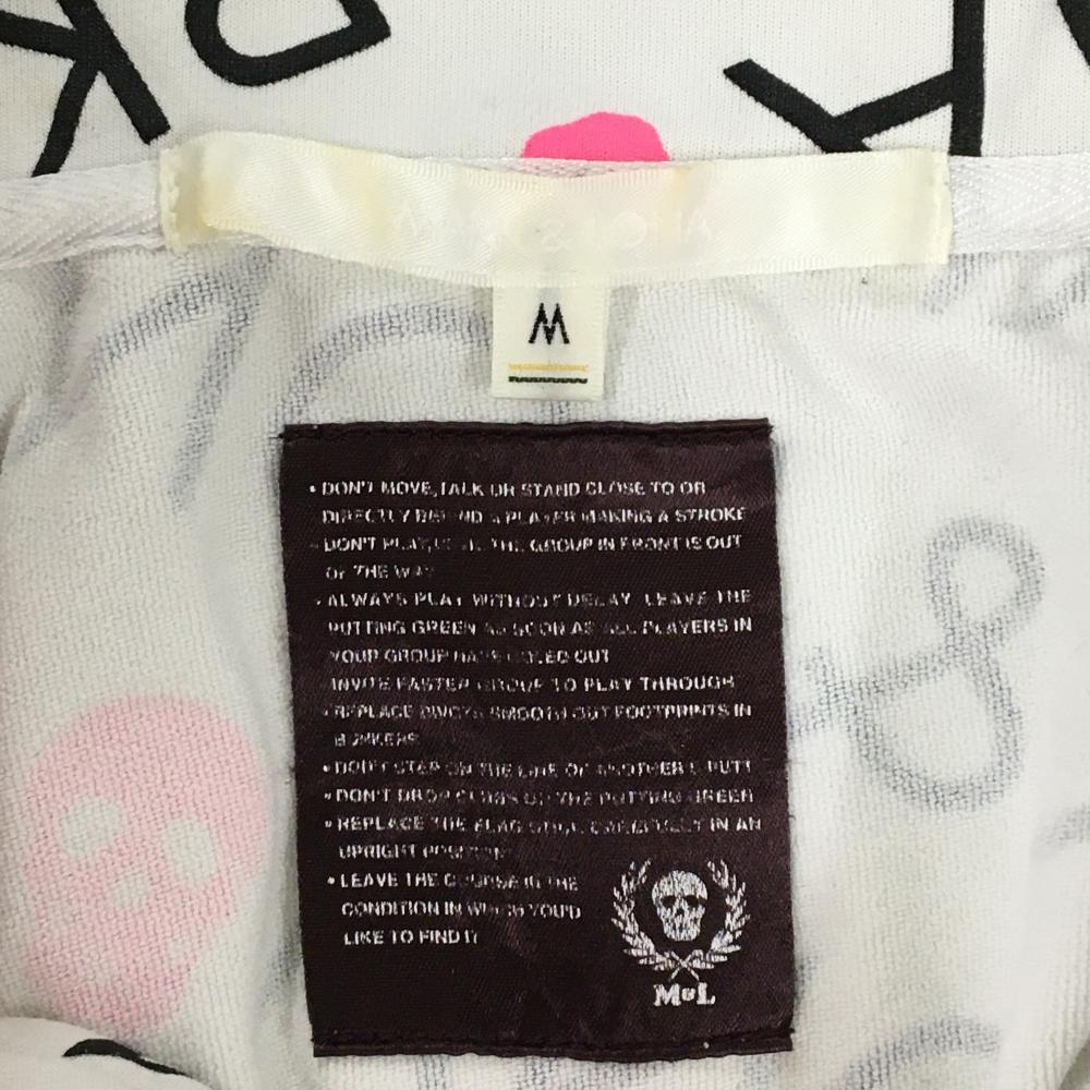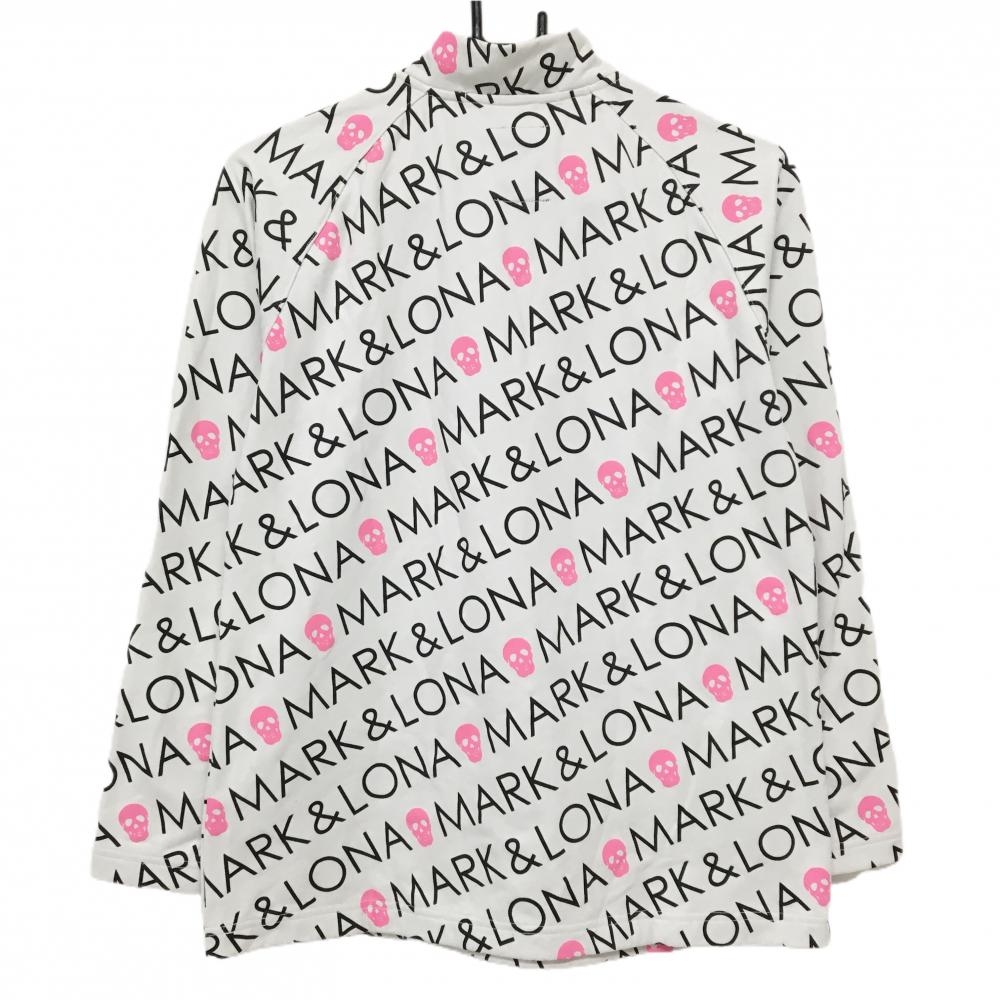 マークアンドロナ 長袖ハイネックシャツ 白×黒×ピンク ロゴ総柄 スカル総柄 レディース M ゴルフウェア MARK&LONA