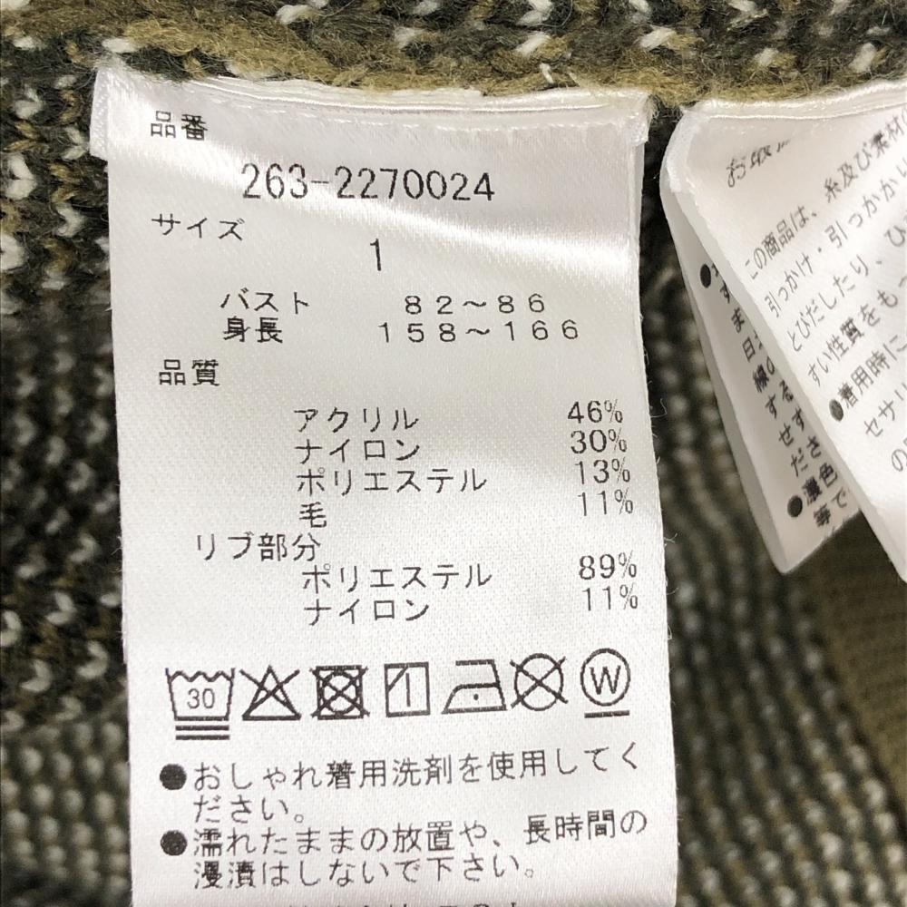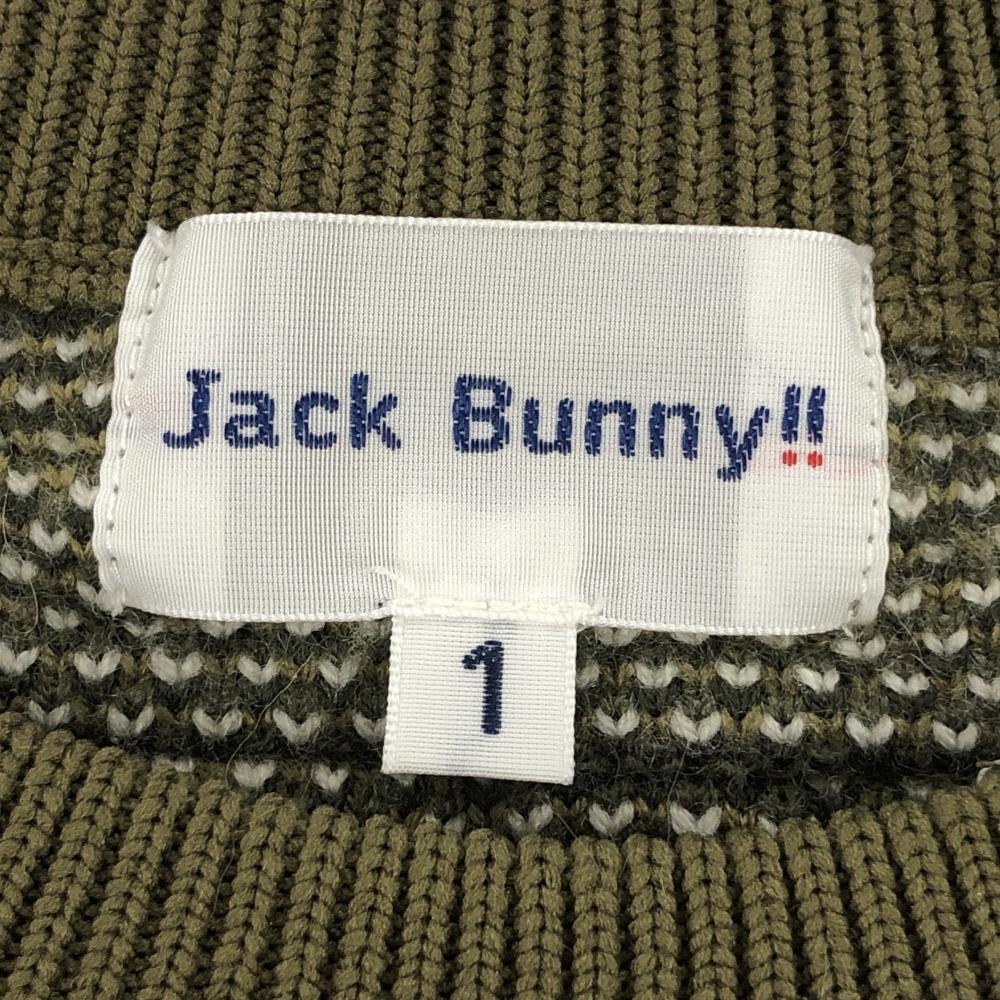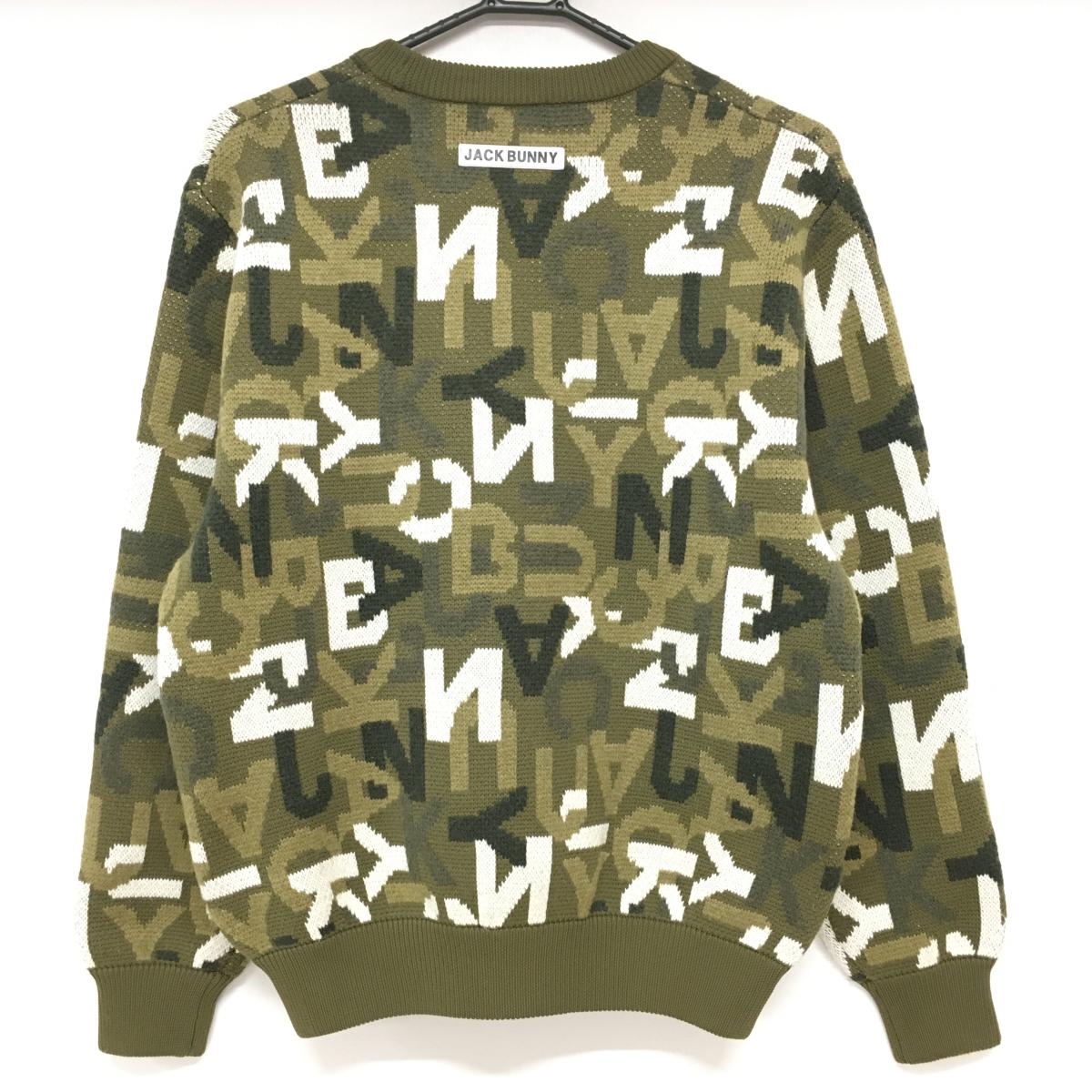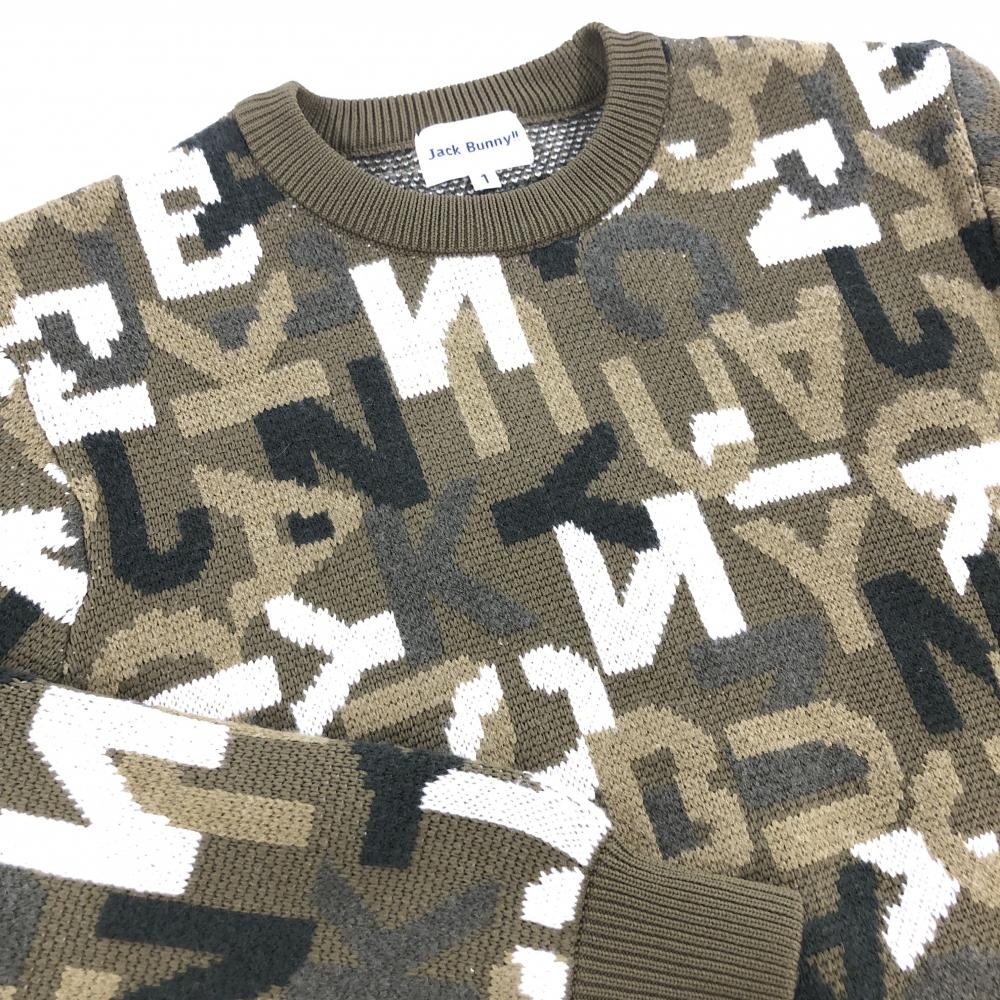 【超美品】ジャックバニー セーター カーキ×白 ロゴ総柄 ウール混 ニット レディース 1(M) ゴルフウェア Jack Bunny