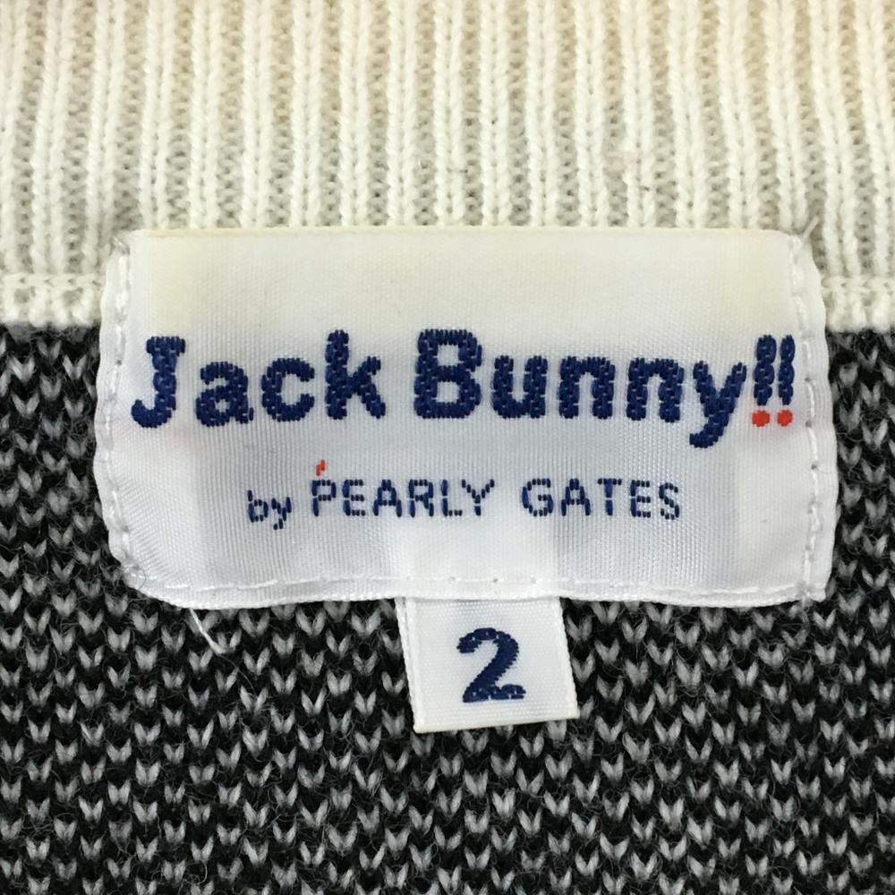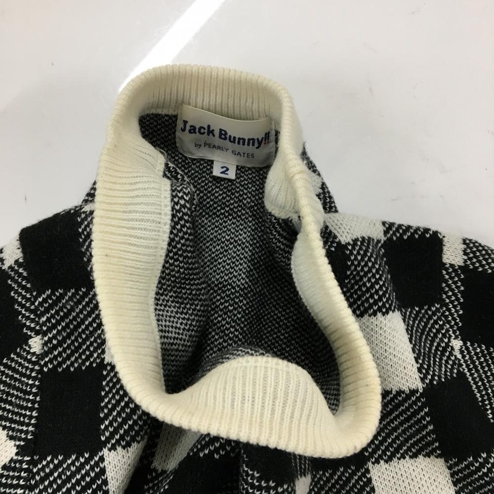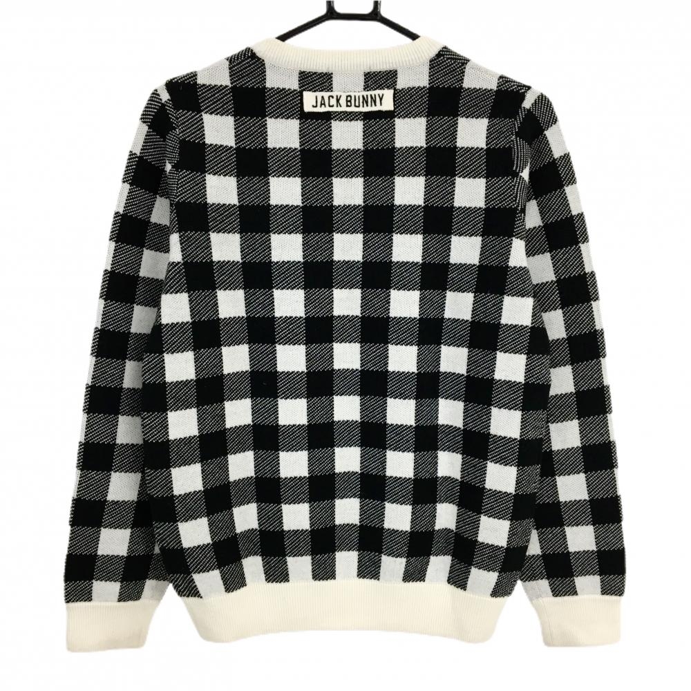 【美品】ジャックバニー セーター 白×黒 ブロックチェック ウール混 ニット レディース 2(L) ゴルフウェア Jack Bunny