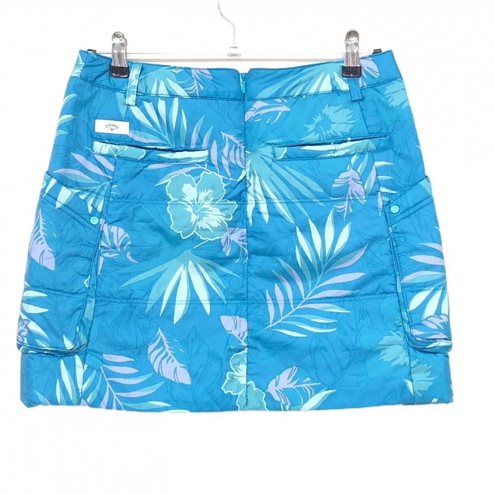【美品】キャロウェイ 中綿スカート ライトブルー×ライトグリーン リーフ柄 レディース L ゴルフウェア Callaway