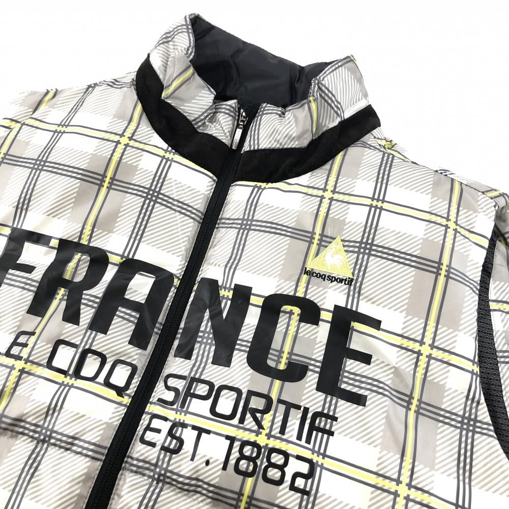 ルコックゴルフ ダウンベスト 白×グレー 格子チェック柄 メンズ LL ゴルフウェア le coq sportif