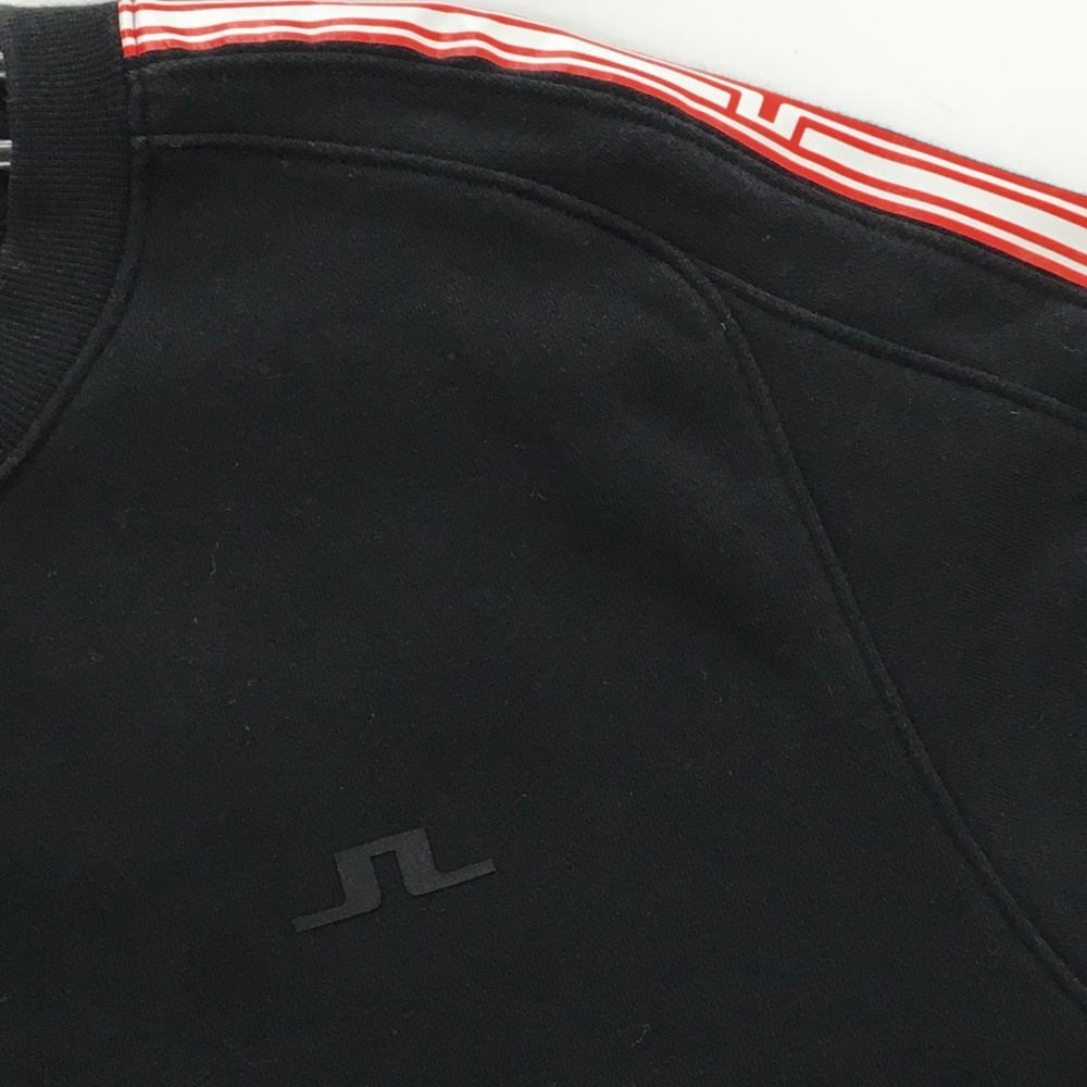 【美品】ジェイリンドバーグ トレーナー 黒×レッド 裏微起毛 肩・袖ロゴライン メンズ L ゴルフウェア J.LINDEBERG