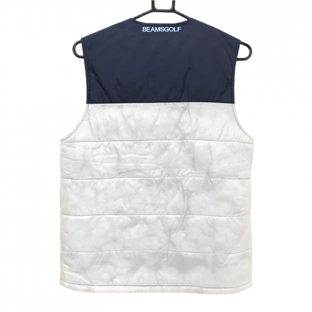 【超美品】ビームスゴルフ 中綿ベスト ライトグレー×ネイビー ロゴプリント 蓄熱裏地 メンズ M ゴルフウェア BEAMS GOLF