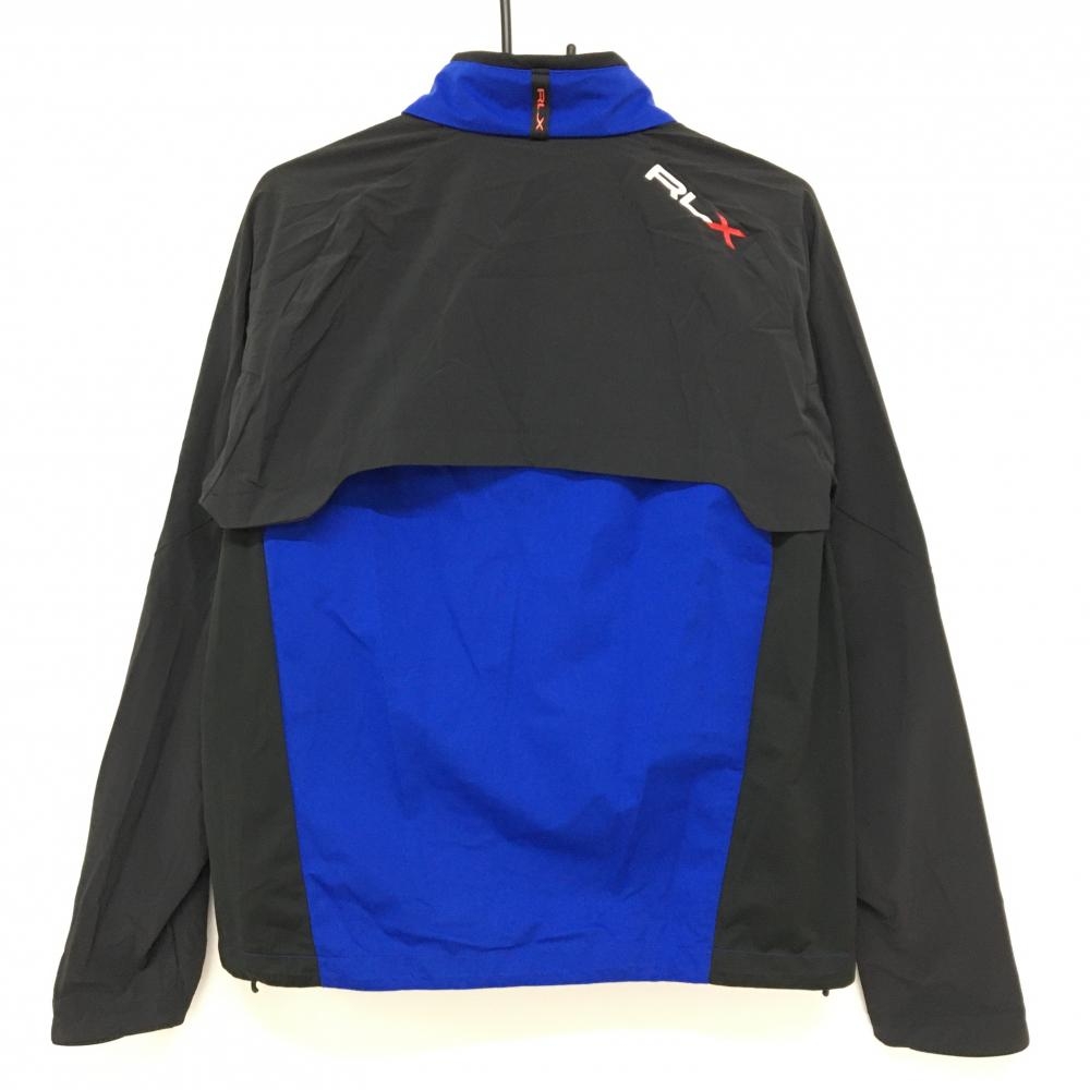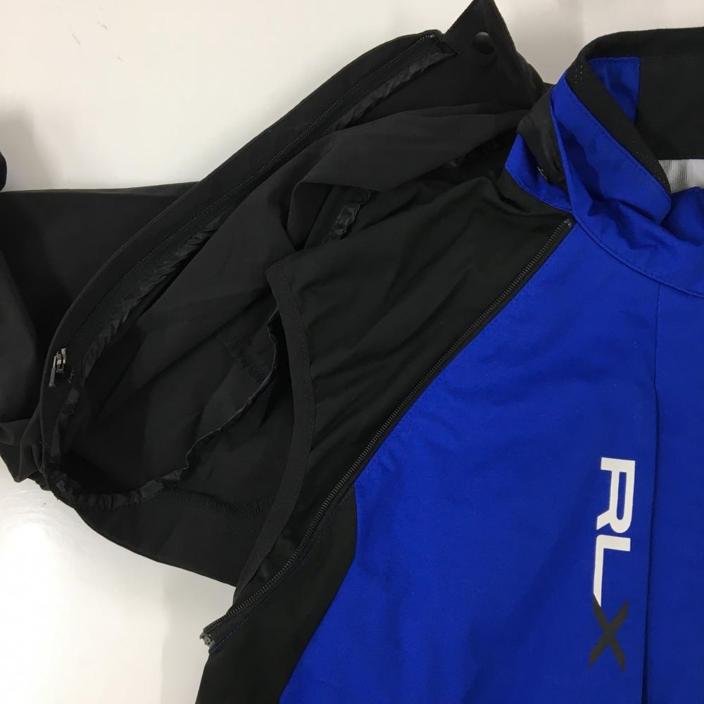 RLXラルフローレン 2WAYジャケットブルゾン ブルー×黒 ロゴプリント 袖着脱可 裾ドローコード メンズ M ゴルフウェア Ralph Lauren