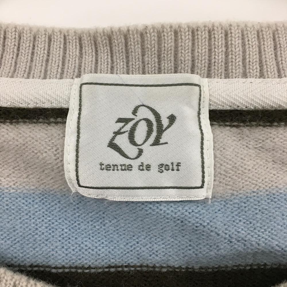 【超美品】ゾーイ ニットベスト ライトグレー×ライトブルー ボーダー ロゴ刺しゅう メンズ サイズ表記無し ゴルフウェア ZOY