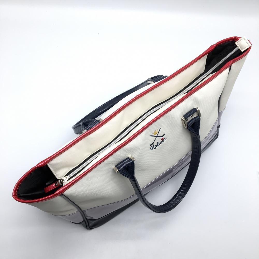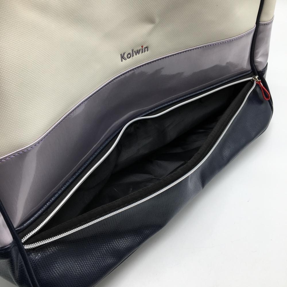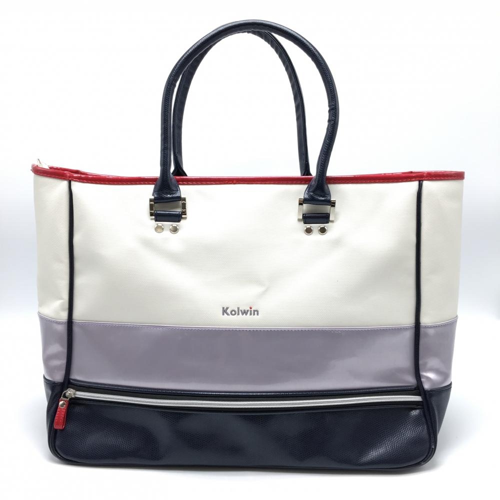 【美品】コルウィン ビッグトートバッグ 白×ネイビー シューズ収納 内ポケット付 ゴルフ Kolwin