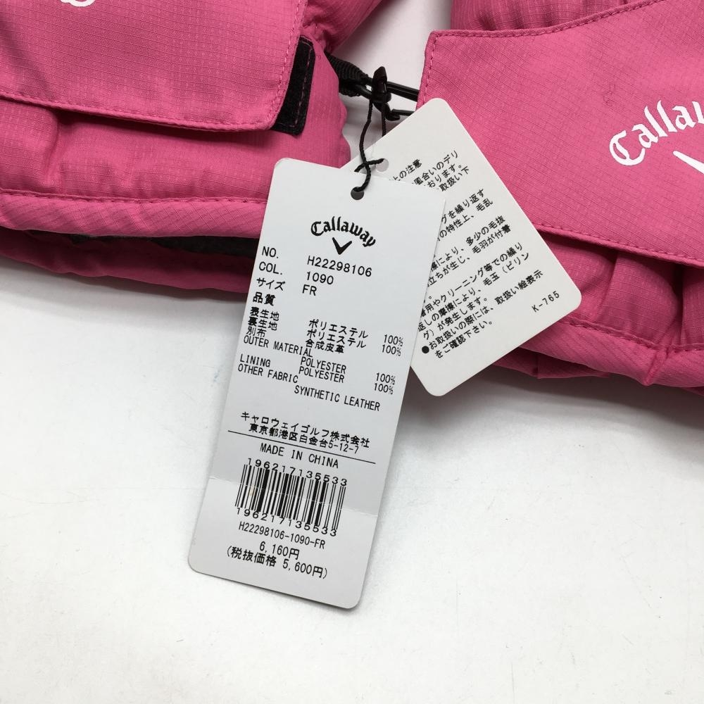 【新品】キャロウェイ 手袋 ピンク×白 ミトングローブ 裏起毛 滑り止め付 メンズ FR ゴルフウェア Callaway