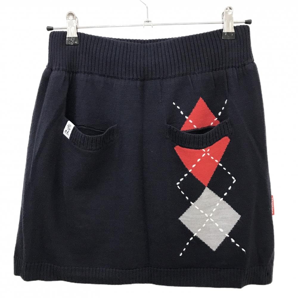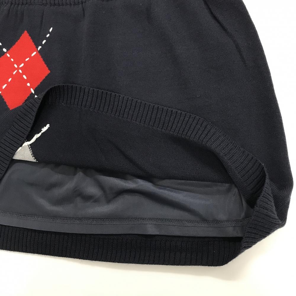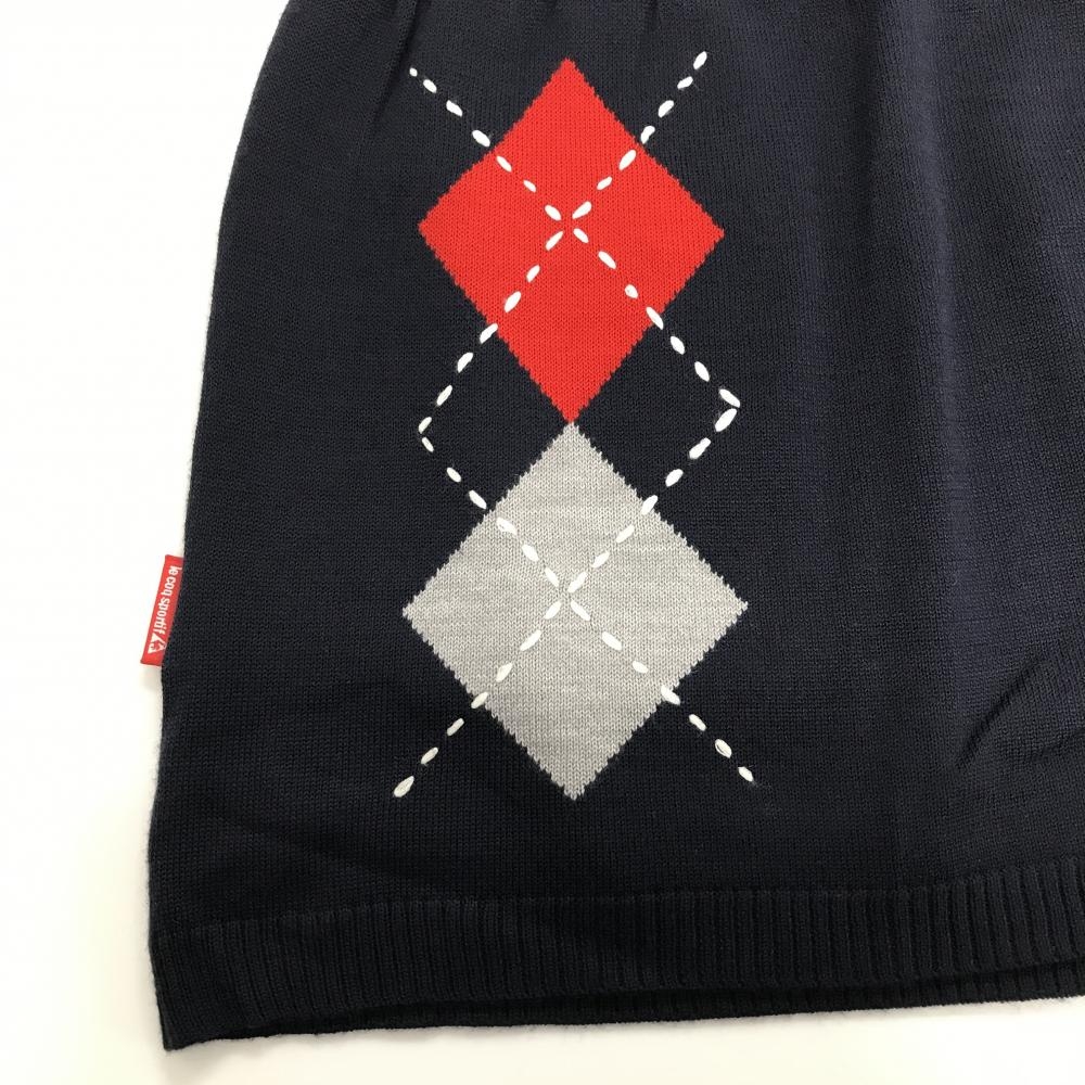 【超美品】ルコックゴルフ ニットスカート ネイビー×レッド 一部アーガイル柄 裏地付 レディース 7 ゴルフウェア le coq sportif
