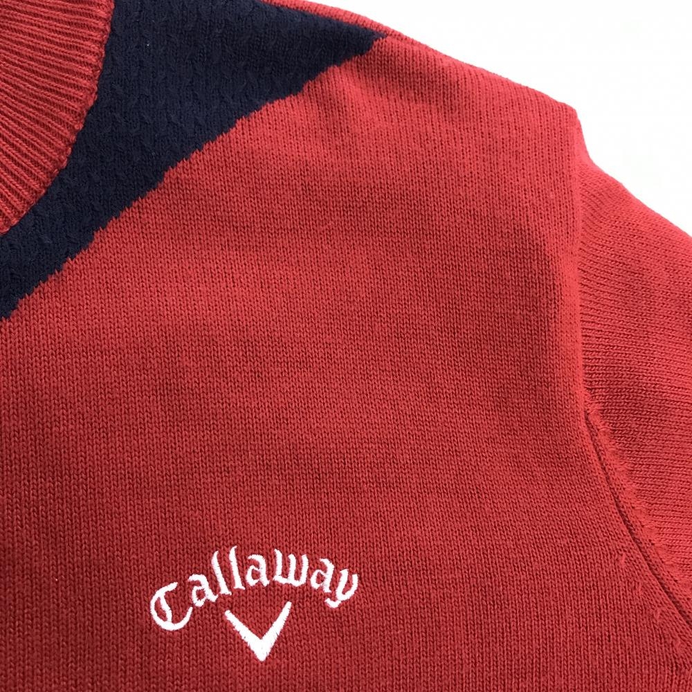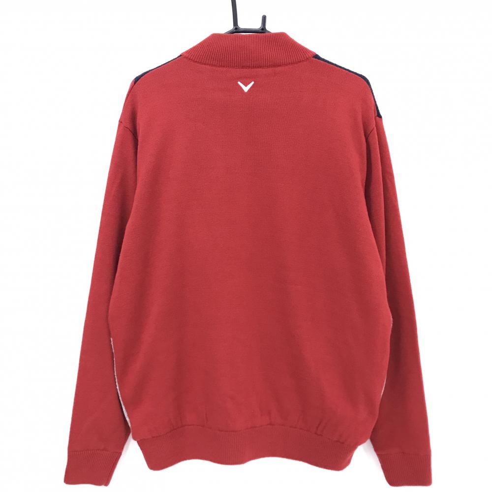 【美品】キャロウェイ ニットジャケット レッド×グレー 裏地付き ウール混 メンズ 3L ゴルフウェア 大きいサイズ Callaway