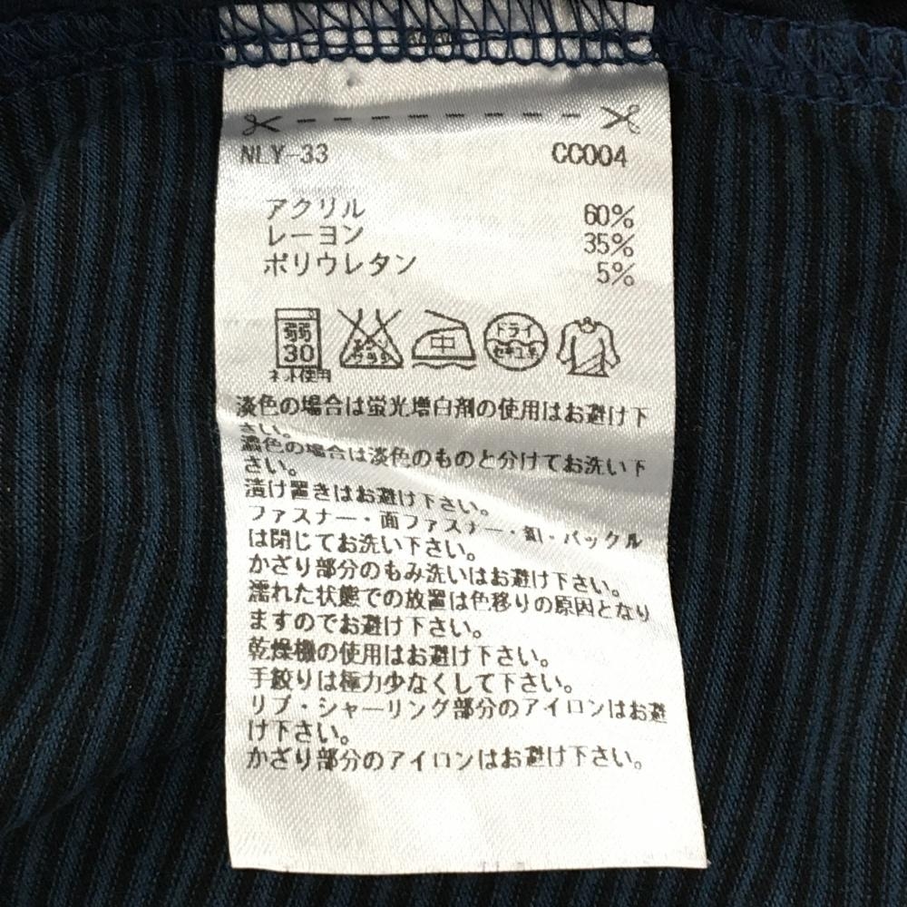 【美品】アシュワース 長袖ハイネックシャツ ネイビー×黒 ネック・袖ボーダー 表微起毛 ロゴワッペン メンズ XO ゴルフウェア ASHWORTH