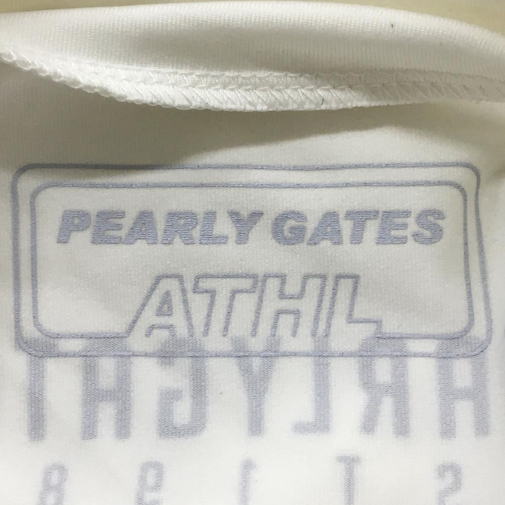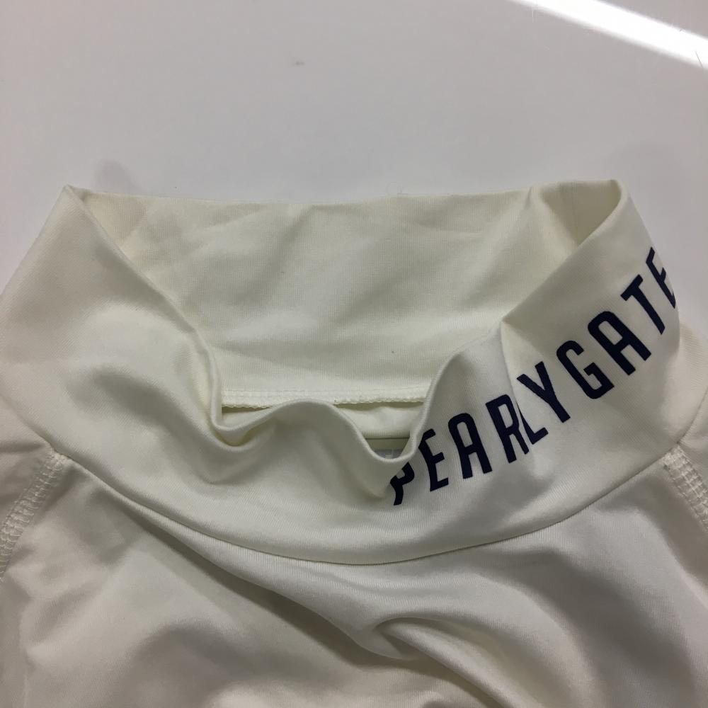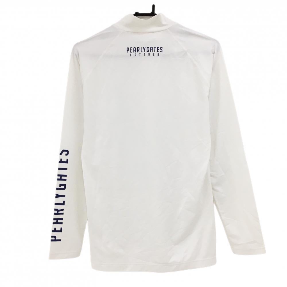 【美品】パーリーゲイツ ハイネックインナーシャツ 白×ネイビー 袖ロゴプリント メンズ 5(L) ゴルフウェア PEARLY GATES