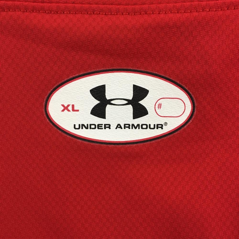 【超美品】アンダーアーマー ハイネックインナーシャツ レッド ネックロゴ刺しゅう メンズ XL ゴルフウェア UNDER ARMOUR