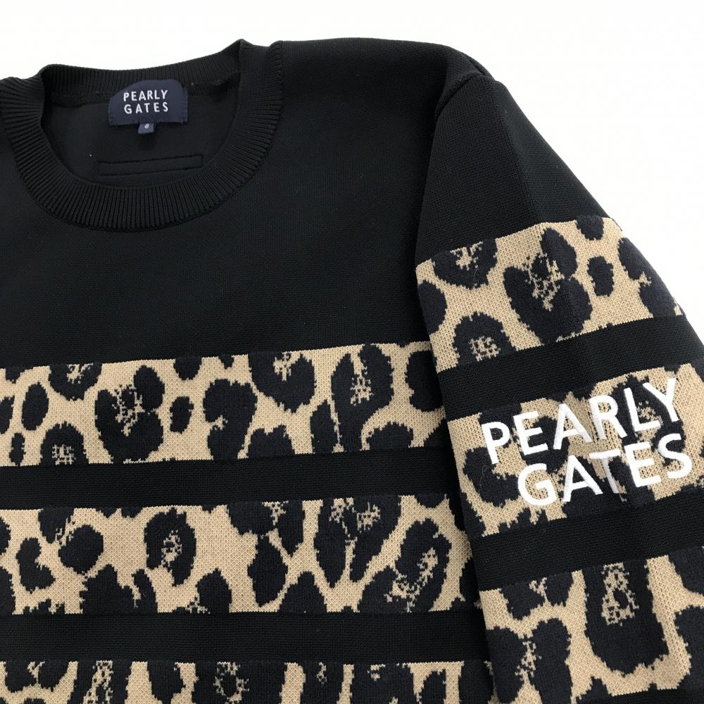 【美品】パーリーゲイツ セーター 黒×ベージュ レオパード ヒョウ柄 ニット ウール混 メンズ 6(XL) ゴルフウェア PEARLY GATES