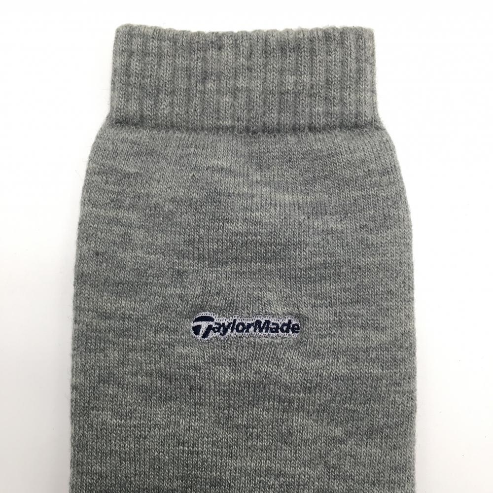 【美品】テーラーメイド レッグウォーマー グレー×ダークネイビー ロゴ ニット レディース ゴルフウェア TaylorMade