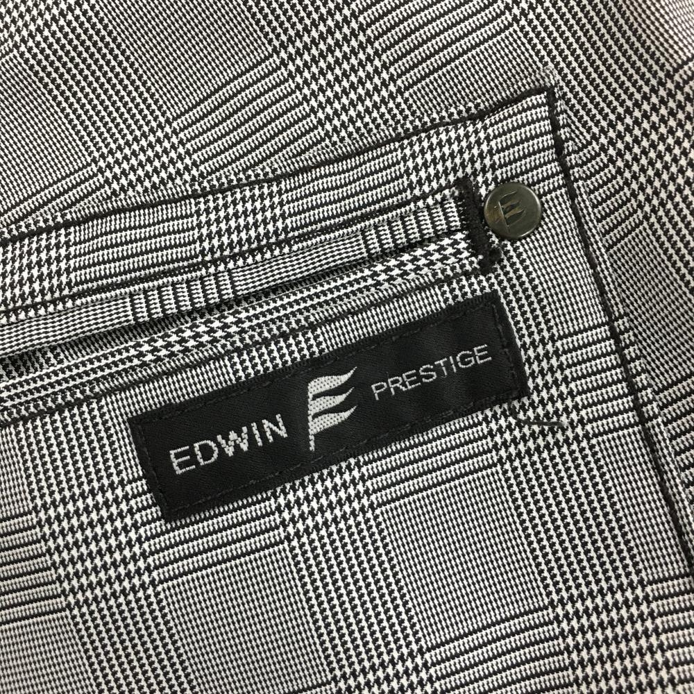 【美品】エドウィン パンツ グレー×黒 グレンチェック ロゴワッペン メンズ L ゴルフウェア EDWIN GOLF