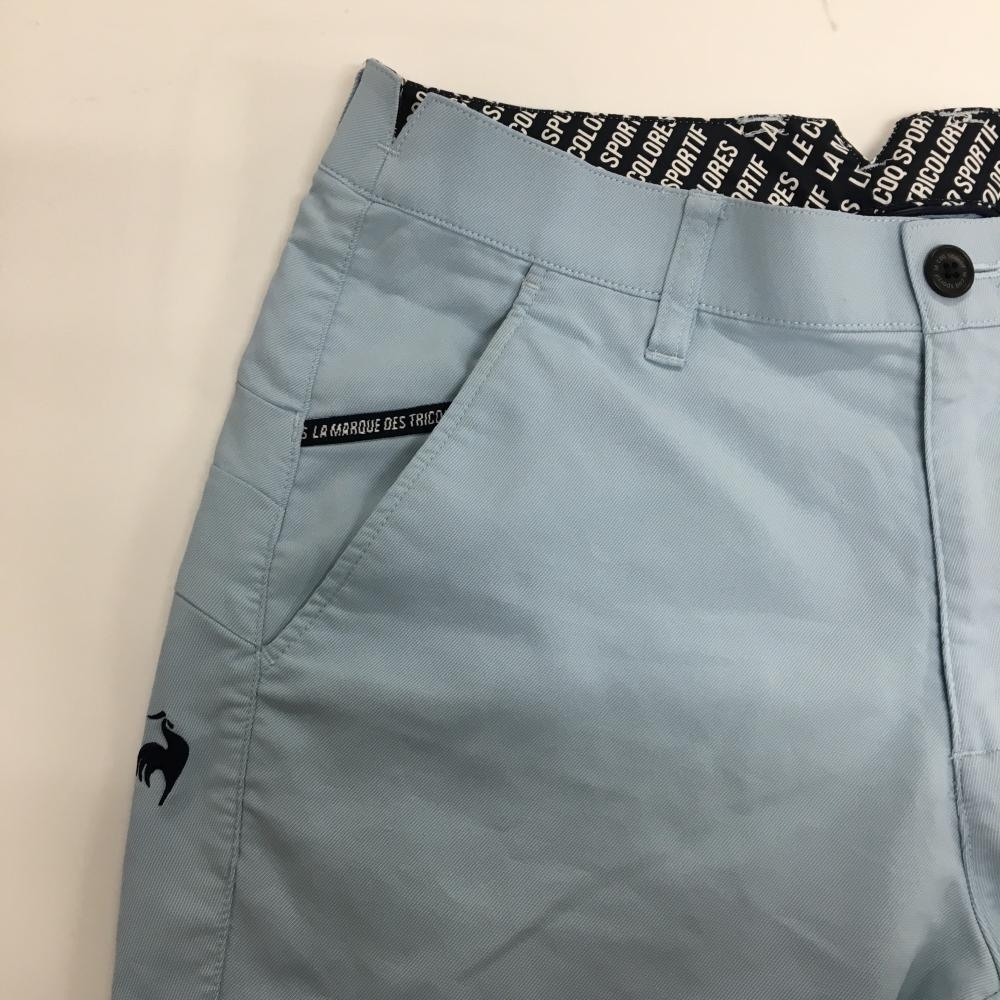 【美品】ルコックゴルフ パンツ ライトブルー×ダークネイビー ロゴ刺しゅう メンズ 82 ゴルフウェア 2023年モデル le coq sportif