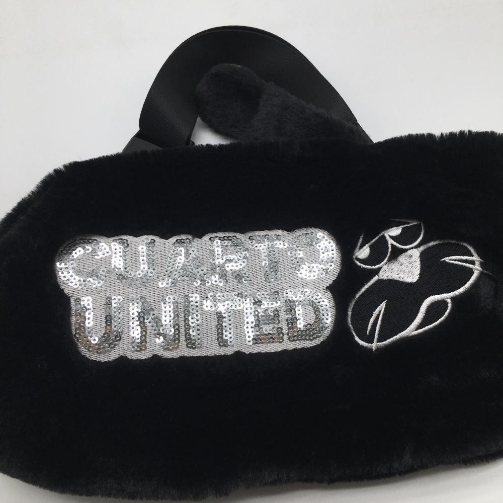 【超美品】クアルトユナイテッド ハンドウォーマー 黒 スパンコールロゴ ポケット付 ゴルフウェア CUARTO UNITED