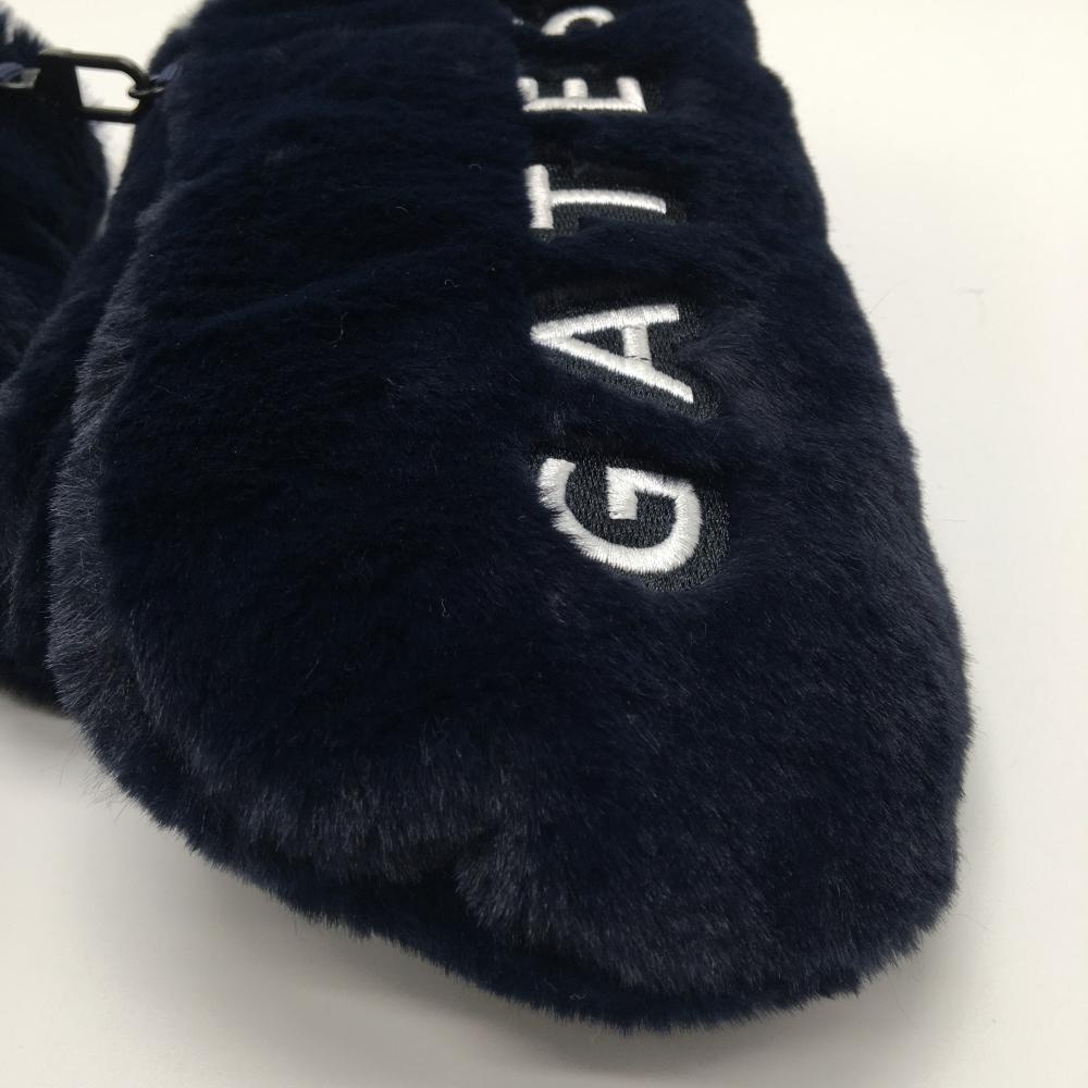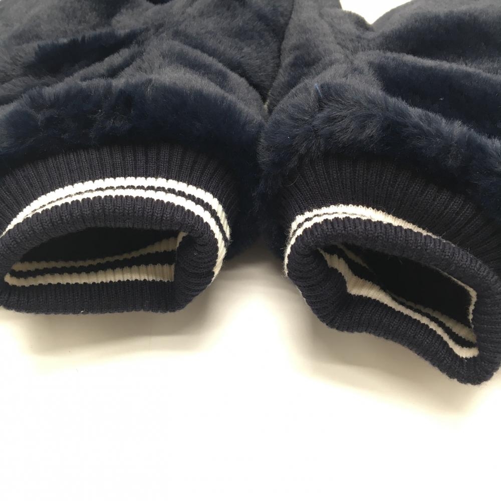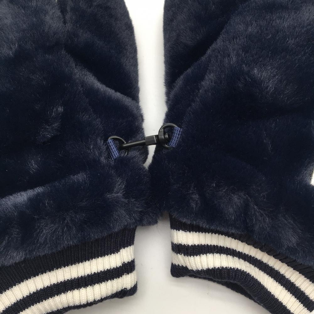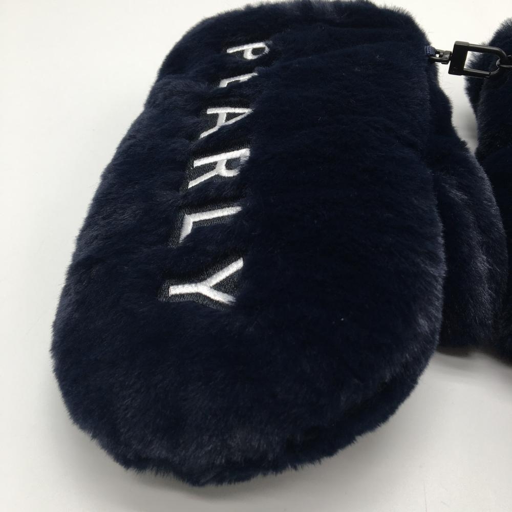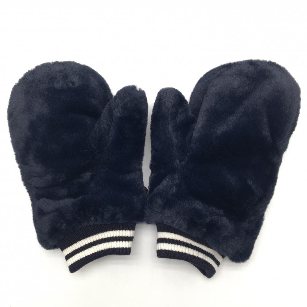 【超美品】パーリーゲイツ 手袋 ネイビー×白 フェイクファー ミトングローブ 両手 レディース ゴルフウェア PEARLY GATES