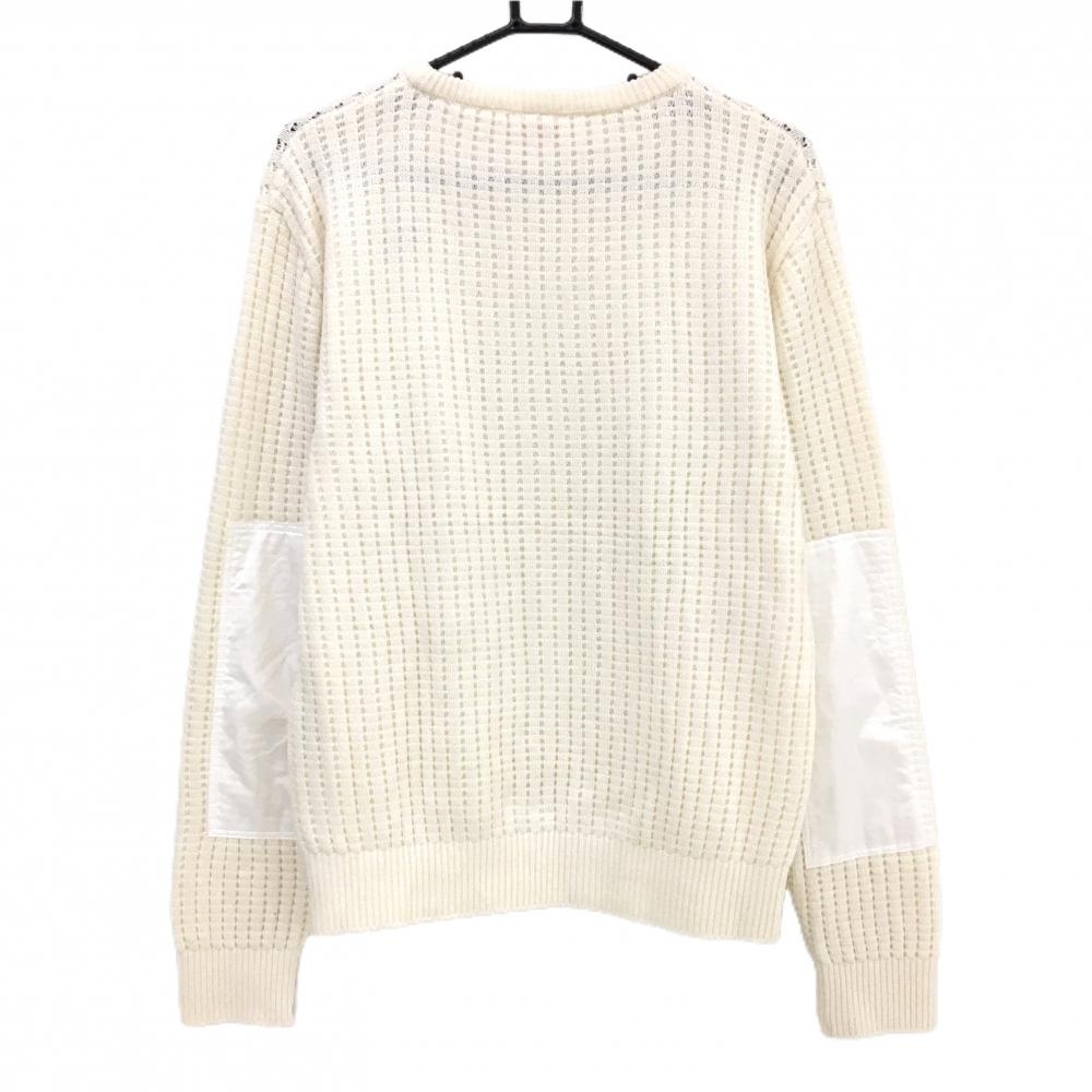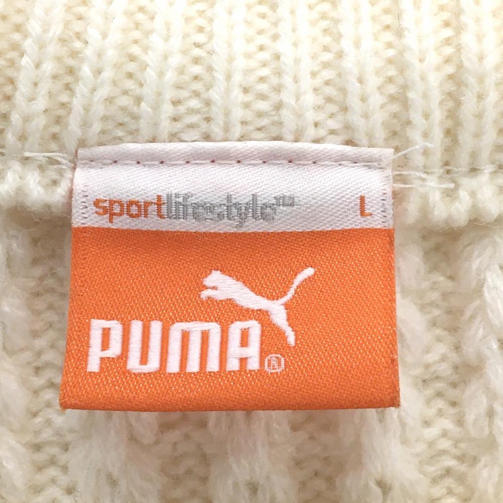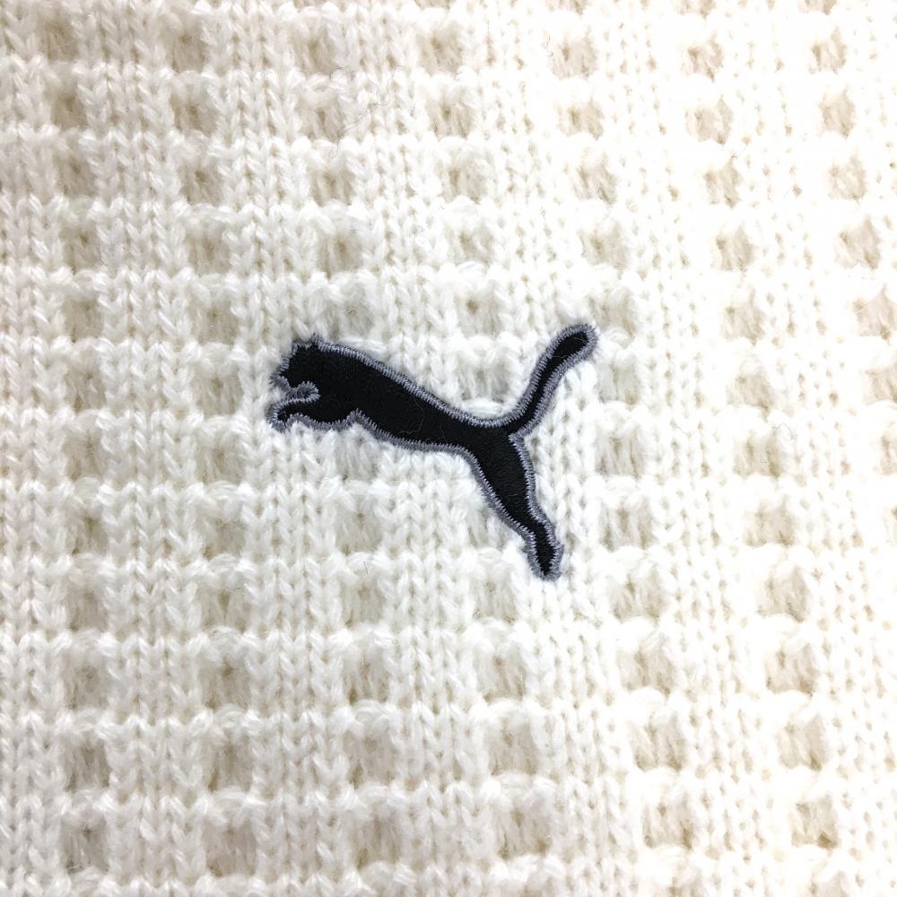 【美品】プーマ セーター アイボリー×白 凹凸編み ニット ウール混 後ろ袖異素材 メンズ L ゴルフウェア PUMA