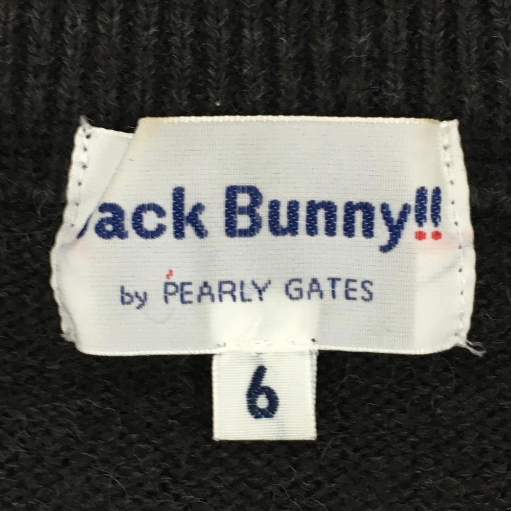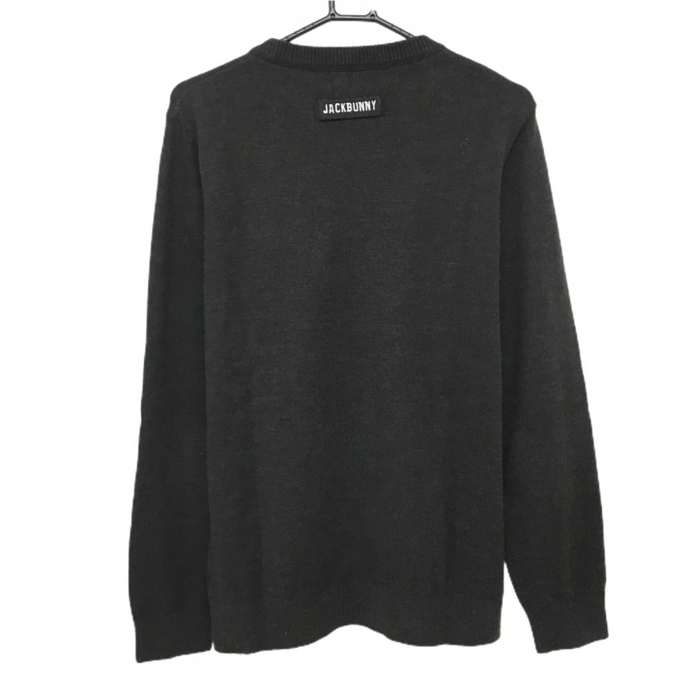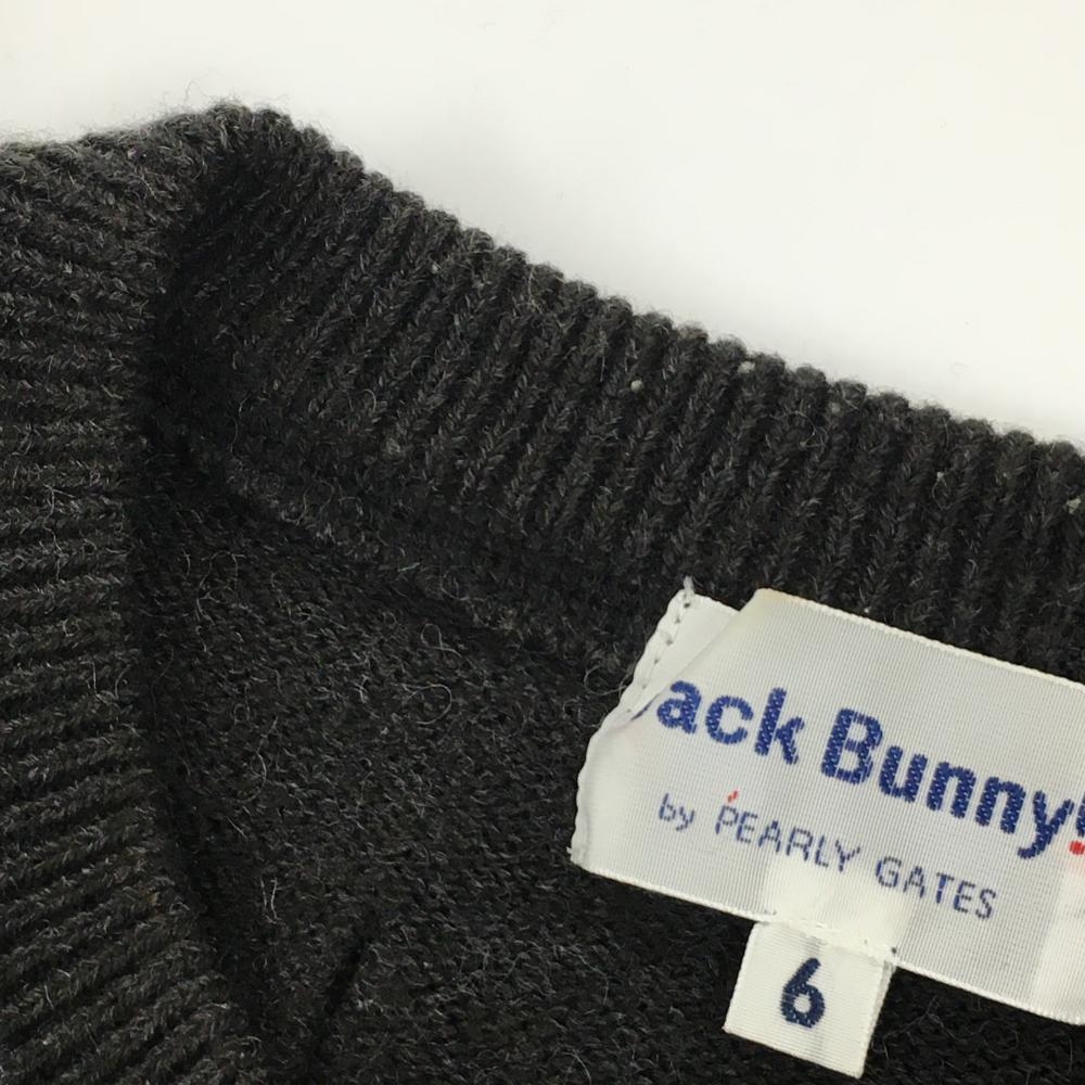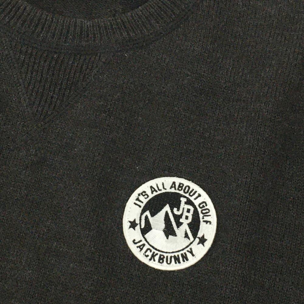 【美品】ジャックバニー セーター ダークグレー ニット ウール混 ロゴワッペン メンズ 6(XL) ゴルフウェア Jack Bunny