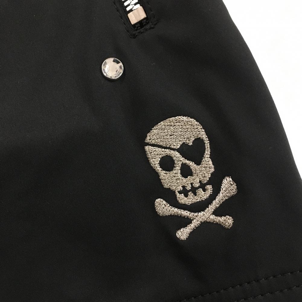 【超美品】ダンスウィズドラゴン スカート 黒 前面ラインストーンスタッズ スカル レディース 1(S) ゴルフウェア Dance With Dragon