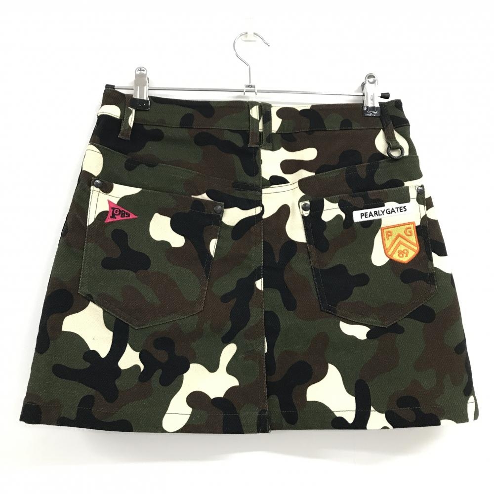 【超美品】パーリーゲイツ スカート カーキ×黒 カモフラ 迷彩 内側30周年 レディース 1(M) ゴルフウェア PEARLY GATES