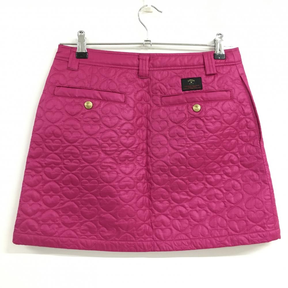 【超美品】キャロウェイ 中綿スカート パープルピンク ハート柄 型押し レディース M ゴルフウェア Callaway