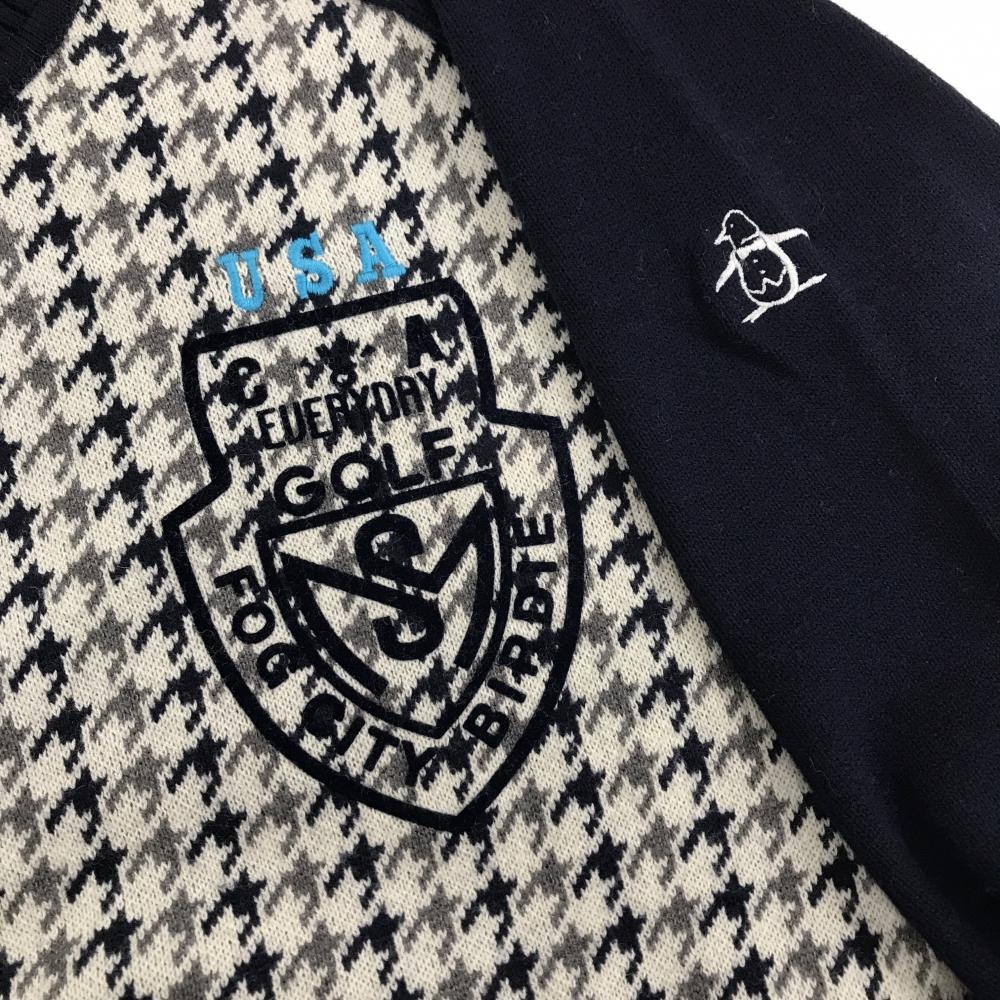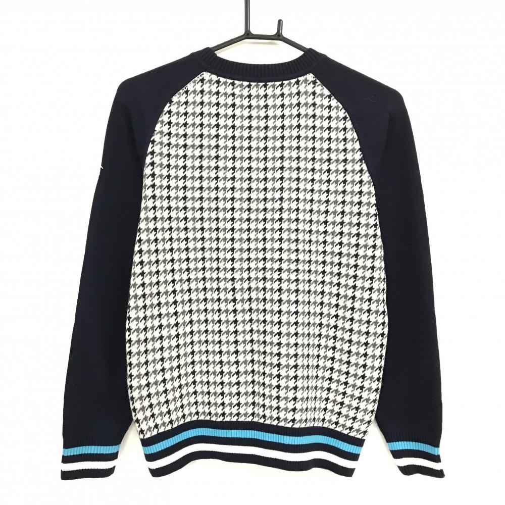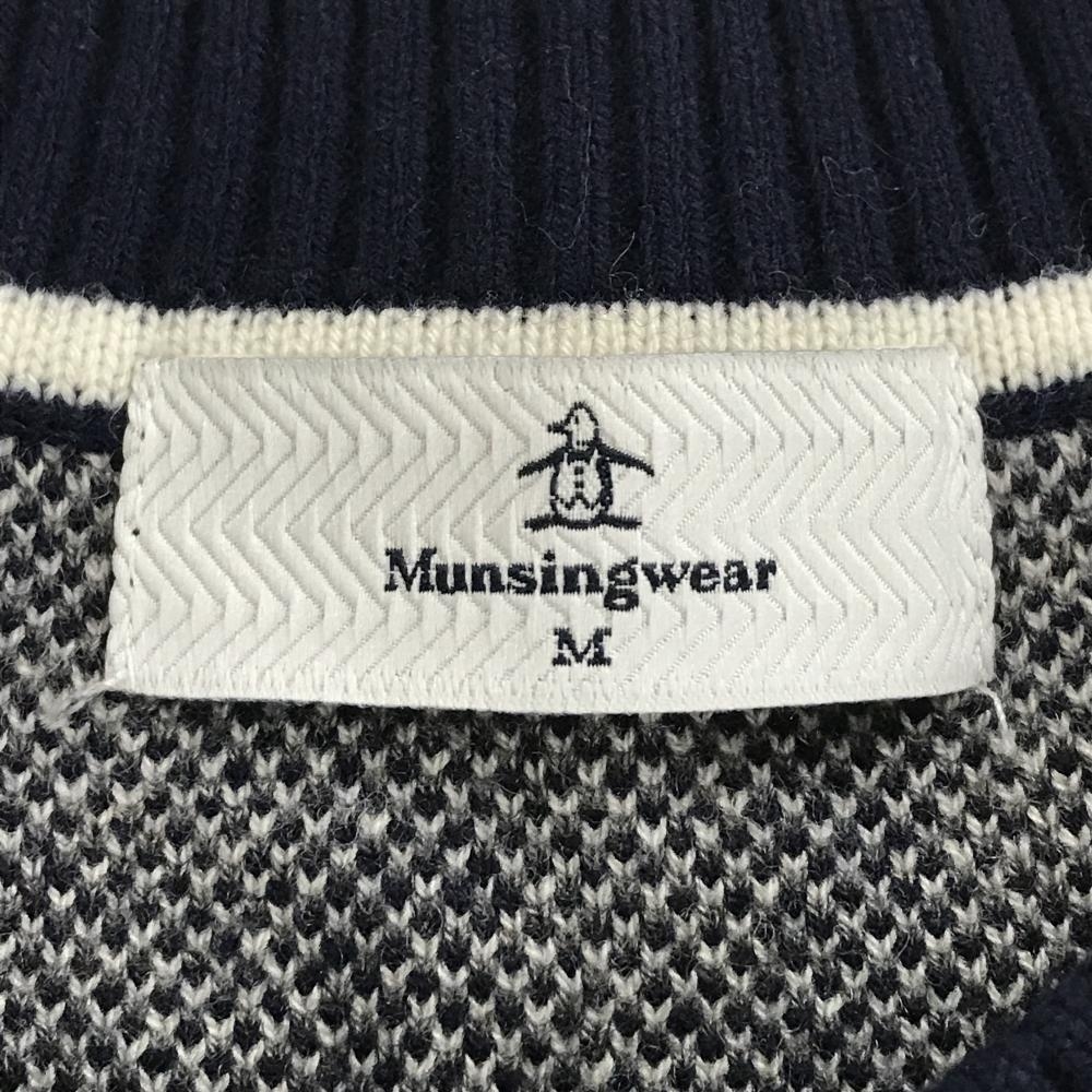 【美品】マンシングウェア セーター ネイビー×グレー×白 身頃千鳥格子 ニット レディース M ゴルフウェア Munsingwear