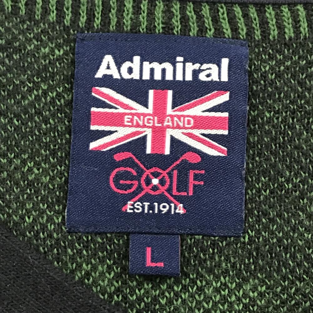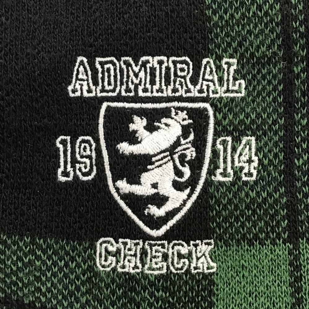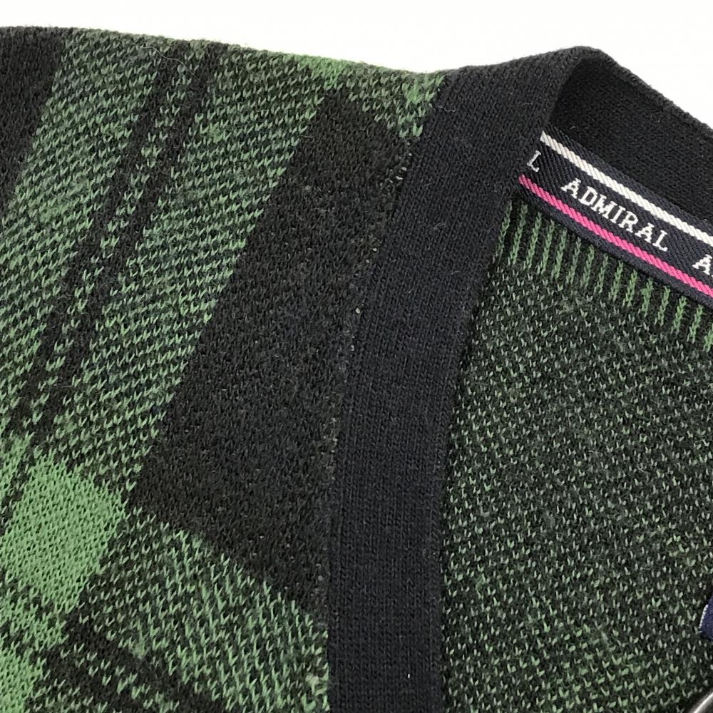 アドミラル カーディガン グリーン×ネイビー チェック ロゴ刺しゅう ウール混 レディース L ゴルフウェア Admiral