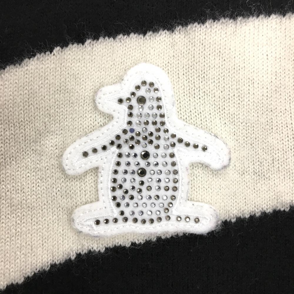 【美品】マンシングウェア ニットジャケット 黒×白 ラインストーン ワッペン 裏地付 レディース M ゴルフウェア Munsingwear