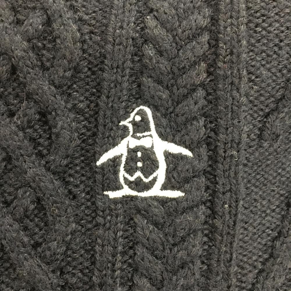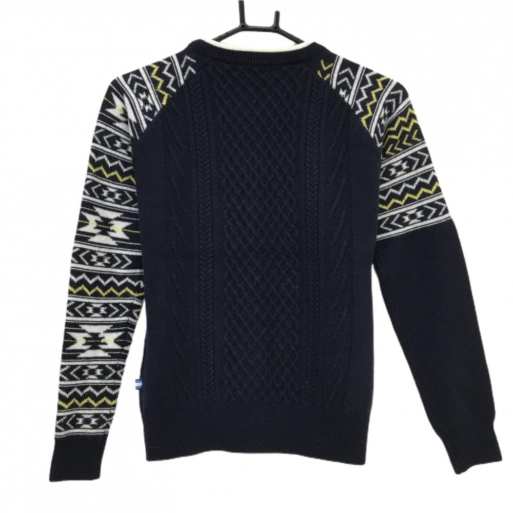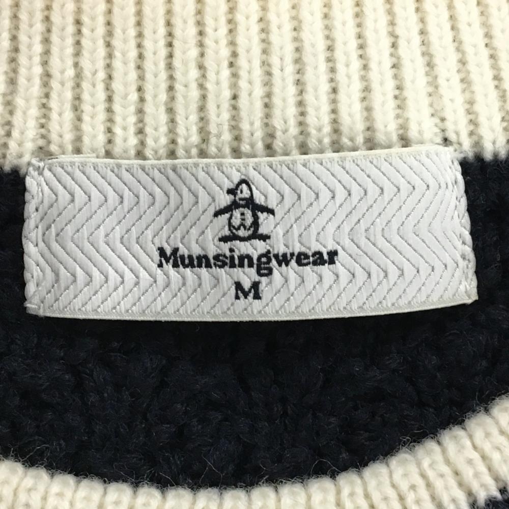 【美品】マンシングウェア セーター ネイビー×白 袖総柄 レディース M ゴルフウェア Munsingwear