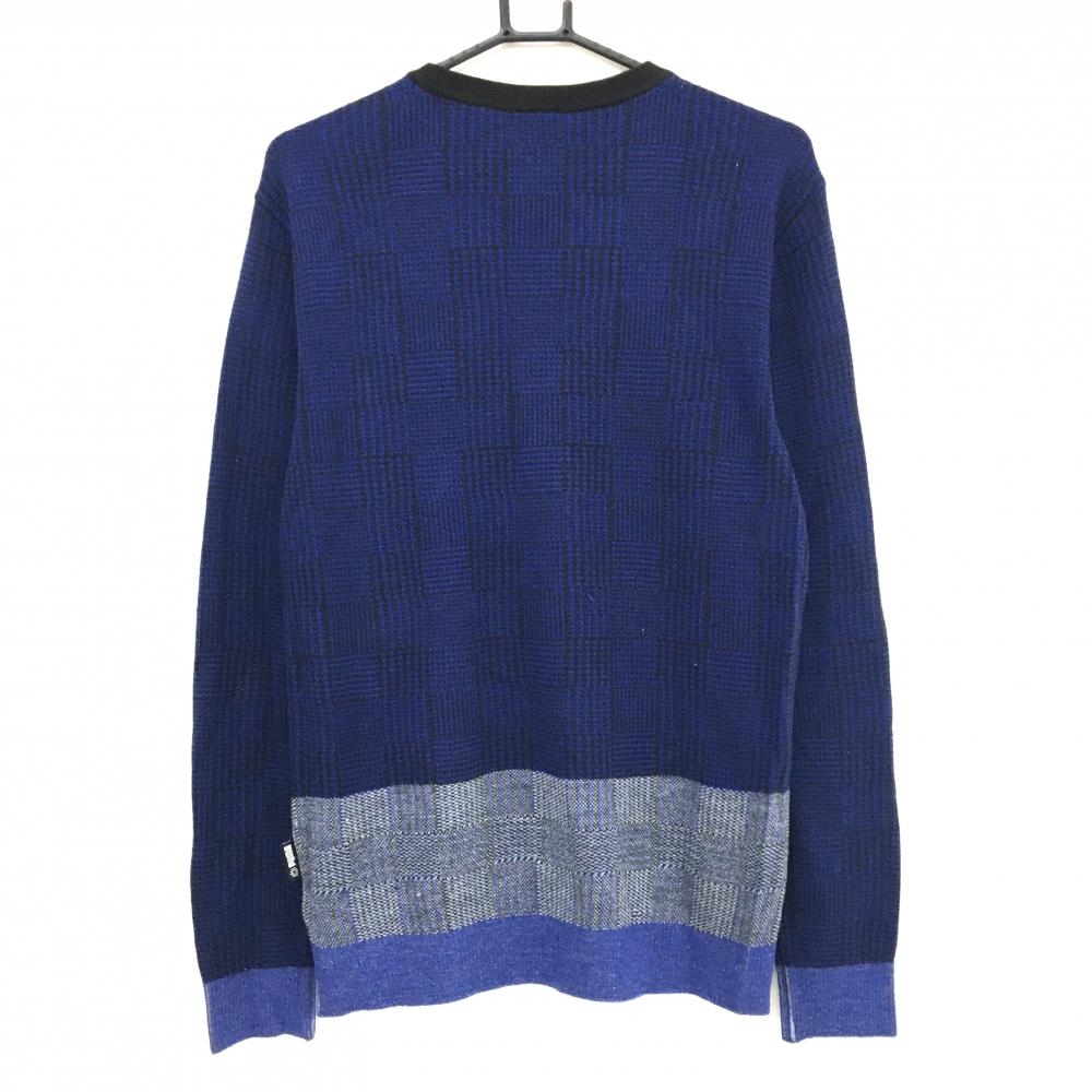 プーマ セーター ブルー×黒 グレンチェック調 ニット ウール混 メンズ L ゴルフウェア PUMA