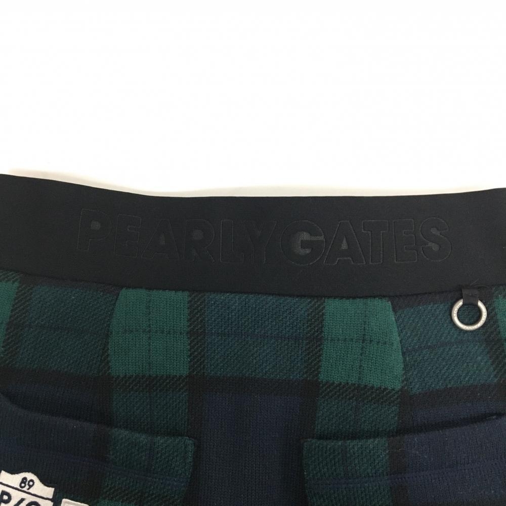 【美品】パーリーゲイツ ニットスカート グリーン×ネイビー チェック 裏起毛 レディース 1(M) ゴルフウェア PEARLY GATES