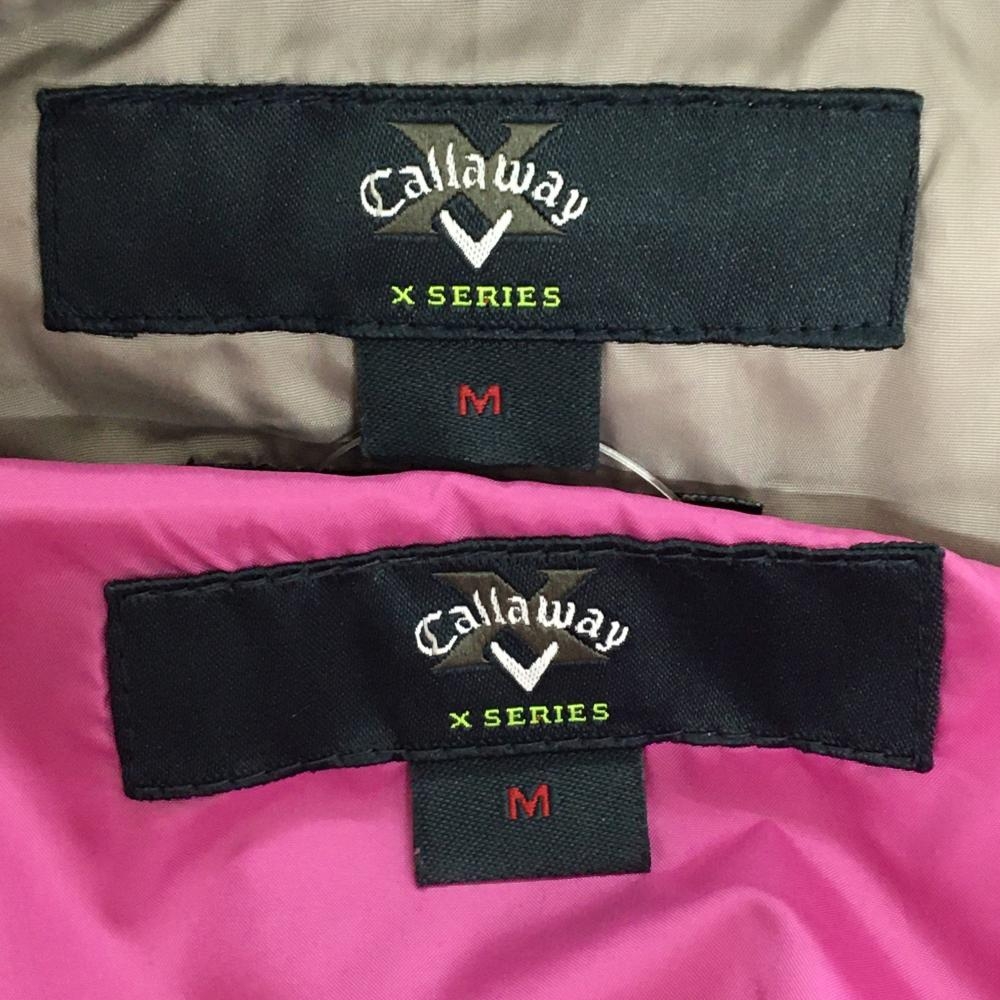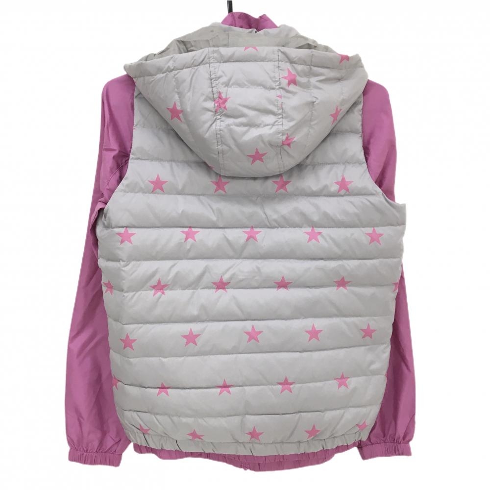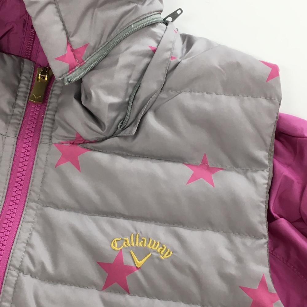 【美品】キャロウェイ ライナー付ダウンベスト グレー×ピンク 星柄 フード着脱可 ダウン90% レディース M ゴルフウェア Callaway
