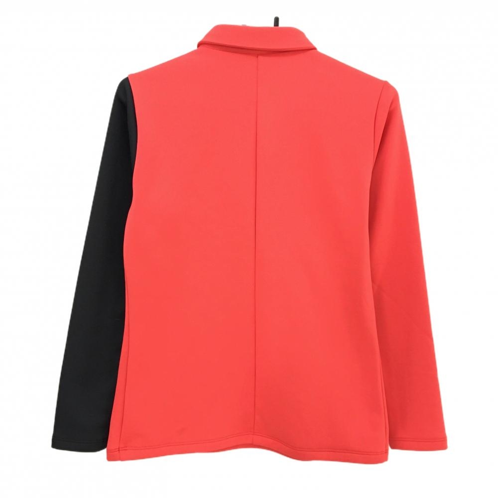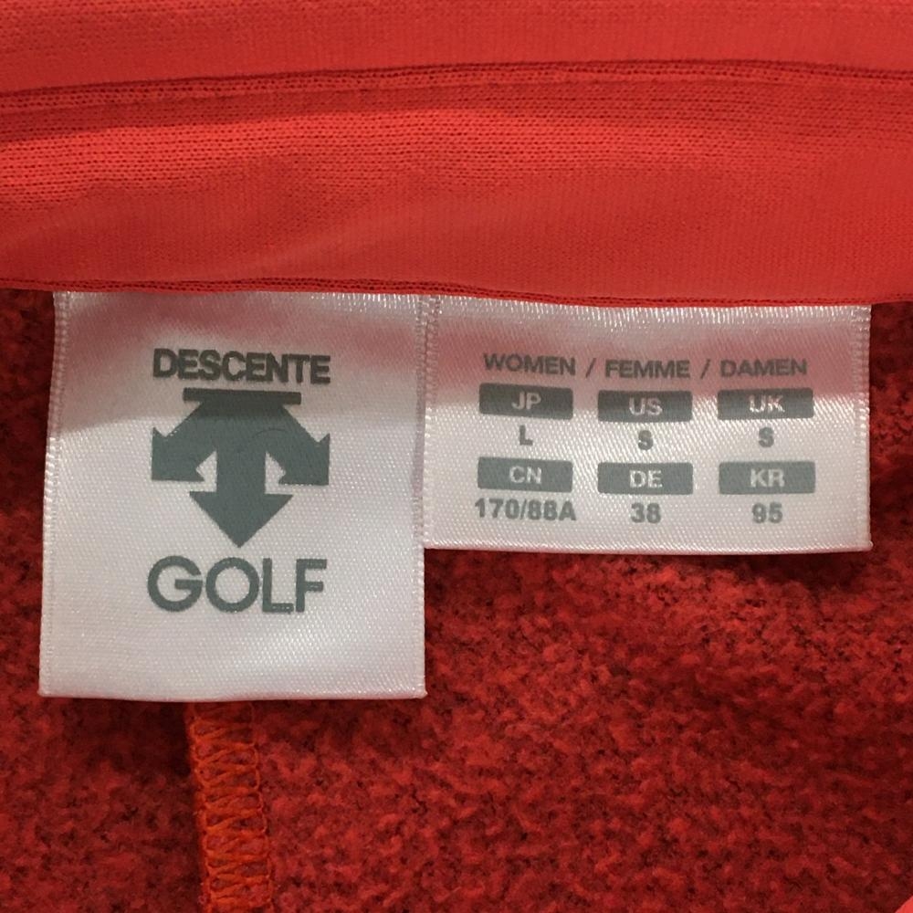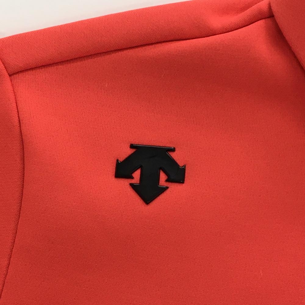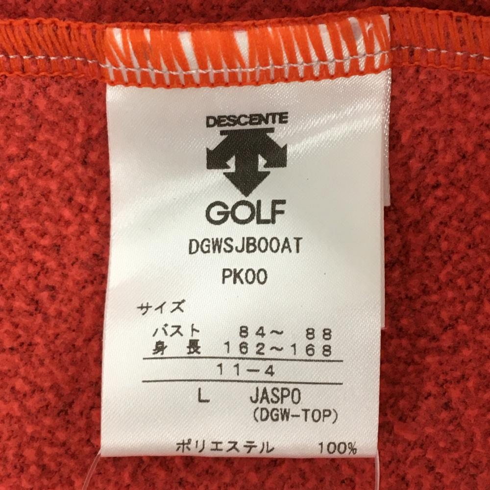 【超美品】デサントゴルフ 長袖ポロシャツ オレンジレッド×黒 サイドビッグプリント 裏起毛 中田英寿 レディース L ゴルフウェア DESCENTE